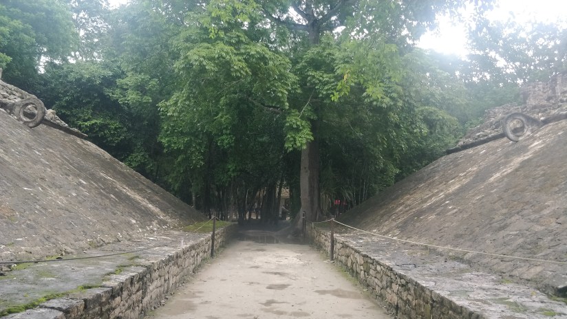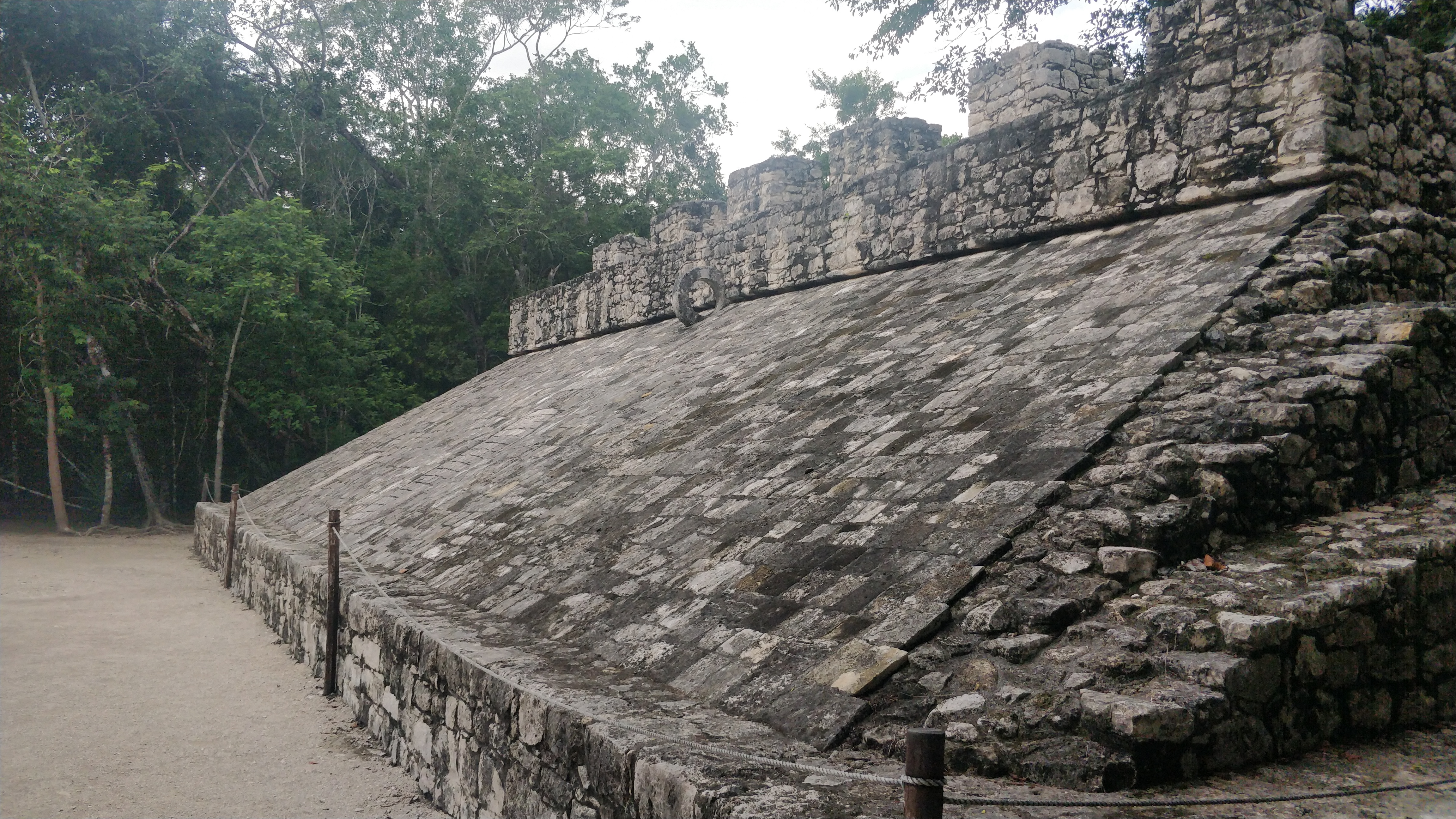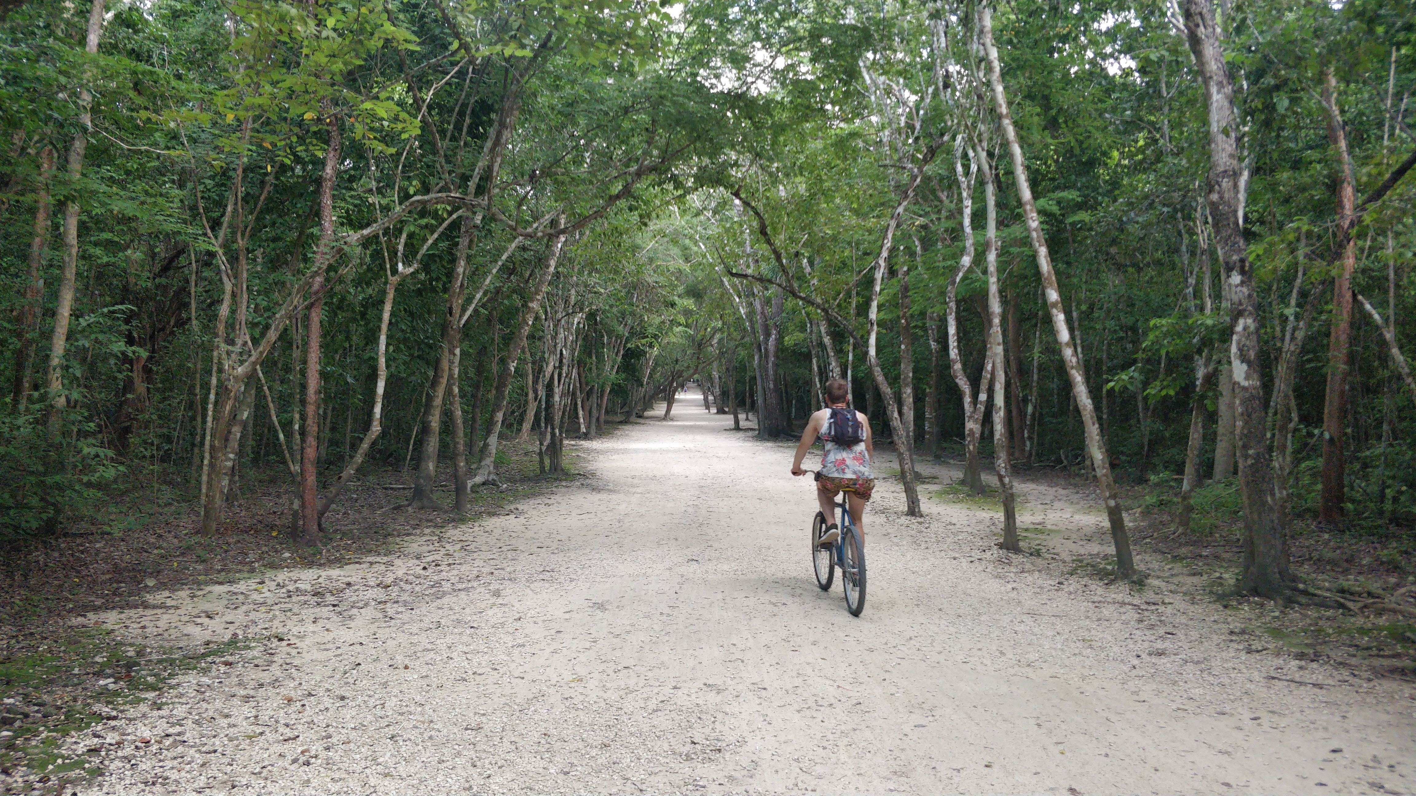 When we arrived at the Coba site, we hired a bike each and began exploring. One of my favourite bits was seeing the Maya ball courts. It’s said that the games could last up to 2 weeks(!) and that the losers of the game were often sacrificed!