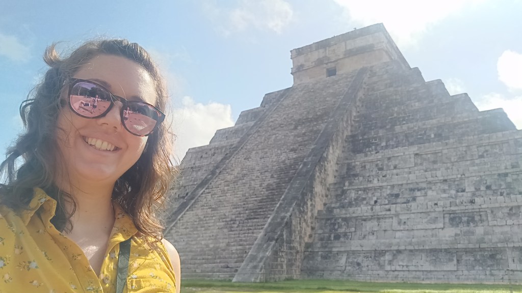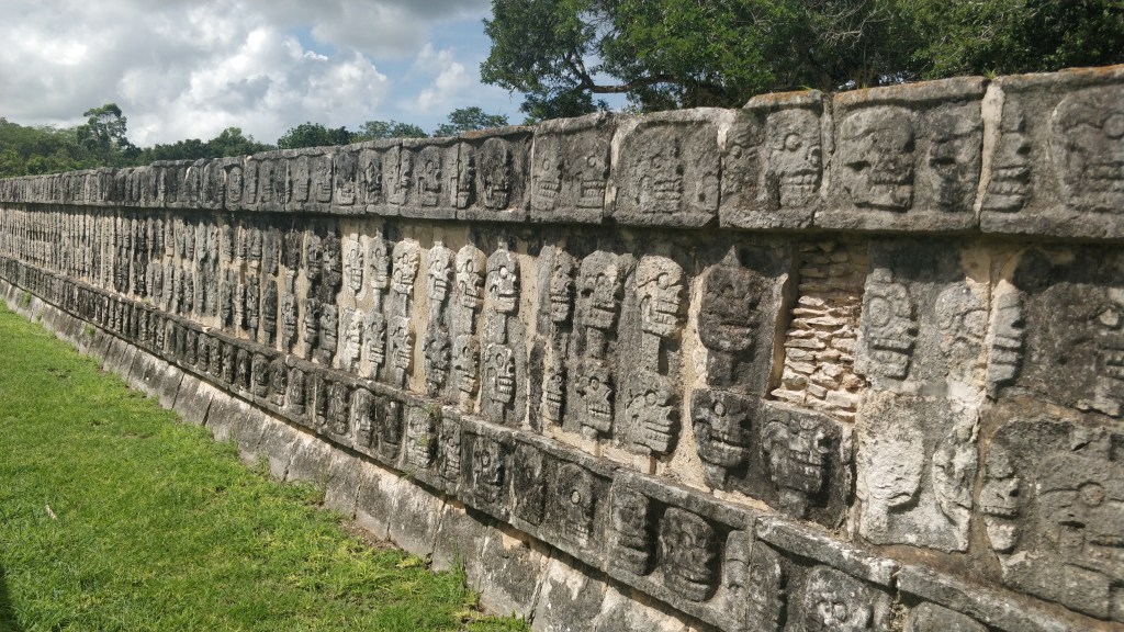 We spent a good few hours exploring the site, it really is fascinating. I had done a bit of reading about the Maya civilisation before the trip too, so it was great to see some of the things I had been reading about. Like the Mayan script, which has only recently been deciphered, the observatory which influenced the Maya calendar, the great ball court – one of the biggest found, the skull platform, which was really creepy and on the road towards the Sacred cenote, where the human sacrifices were made and the Chac Mool, the figures who were said to hold the hearts of the human sacrifices.