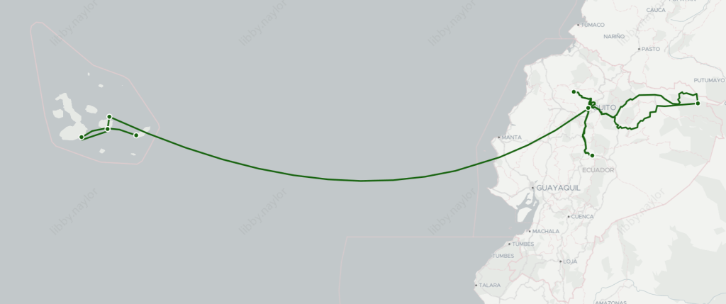 But it’s not just the Galapagos that’s special, I was aware of the diversity of Ecuador, from the high volcanic peaks of the Andes, shrouded in cloud which protect some of the few remaining cloud forests of the world, to the lowland amazon basin, which covers nearly half of the country. As the name suggests it’s also on the Equator, so nice and sunny, and the capital Quito, is the 2nd highest capital city in the world.