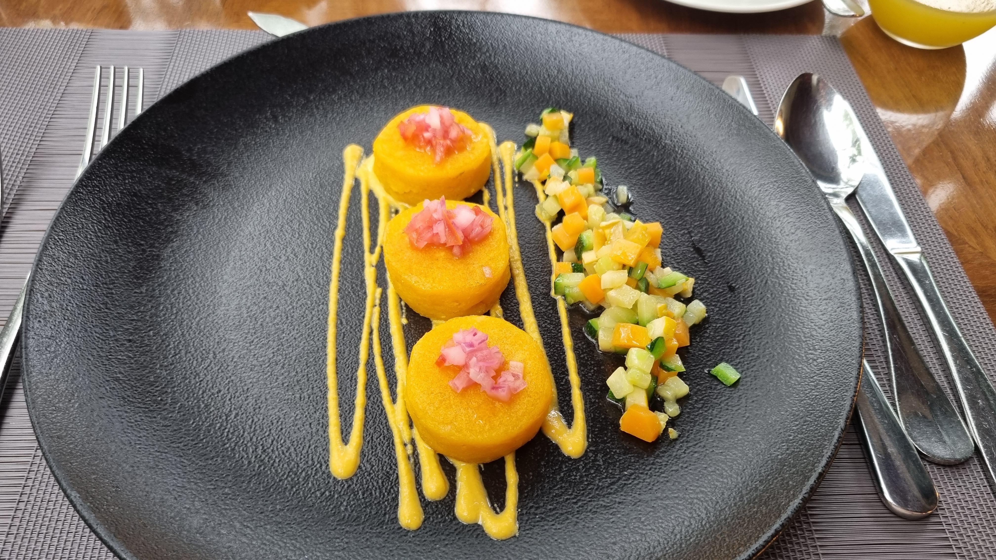 After this, we headed back to the hotel for our evening meal, and as I discovered at lunch, the food here was also just something else. There was a FULL vegan 3-course menu at every meal time. Not just a token vegan meal either, a very well thought out and inventive menu, some of the dishes I had were absolutely amazing! And that first day the thing I remember the most is the chocolate brownie… mmmm…. so good I had it twice haha