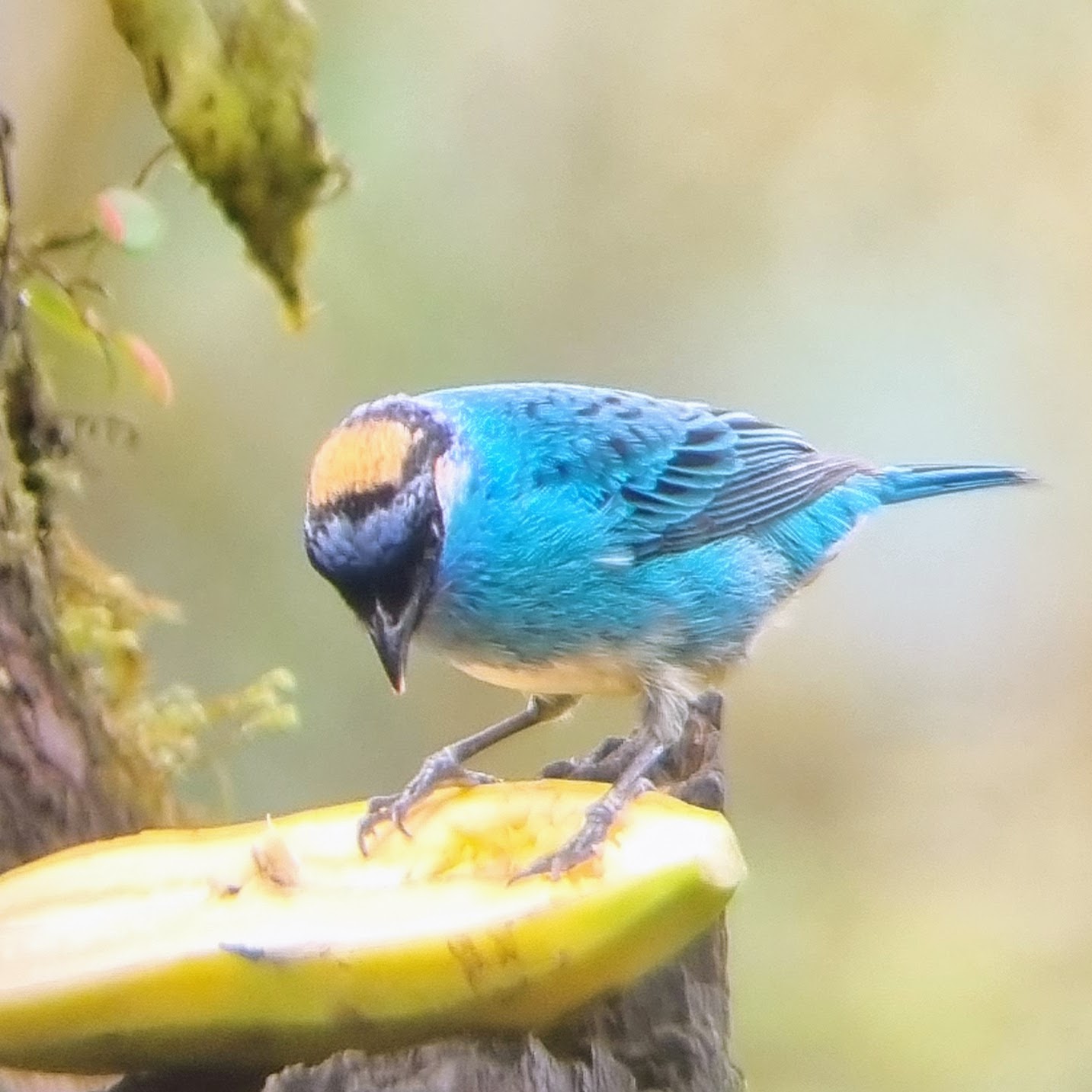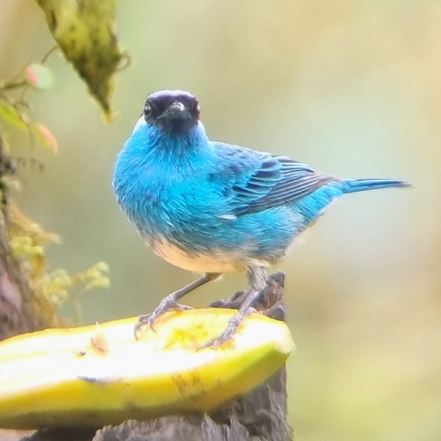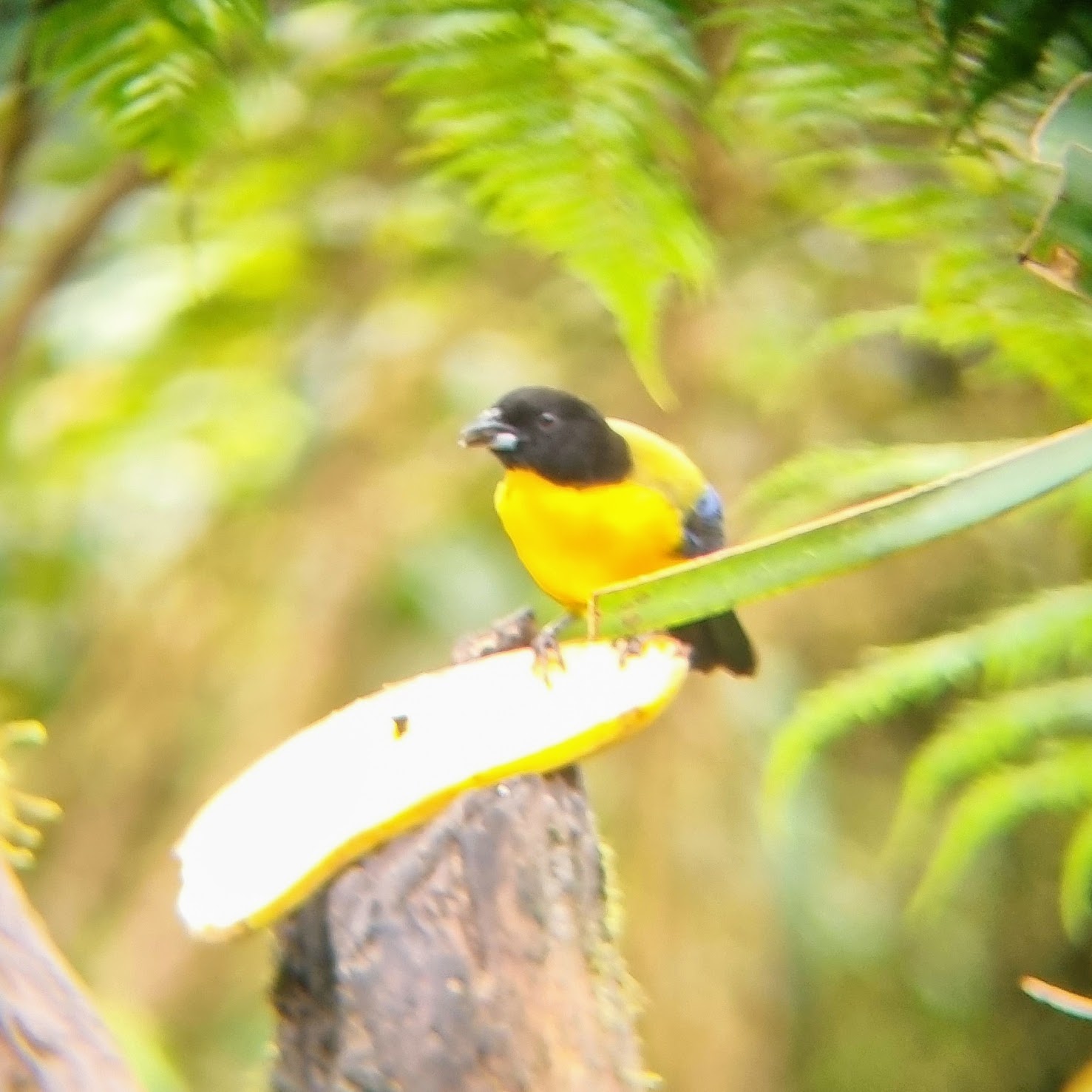 There are a lot of different species of birds within the cloud forests, the unique climate and altitude of this forest mean there’s so much diversity. The most common birds I saw were tanagers and they came in every colour imaginable. Most were easy to guess… “what’s that bluey/grey one called?”, “Oh, that’s the blue-grey tanager”. You think I’m joking, I’m not! One of my faves was called the “glistening green tanager”, but there was also the “flame rumped” and the “flame faced”, and of course, one has to be called the “Mashpi tanager” too!