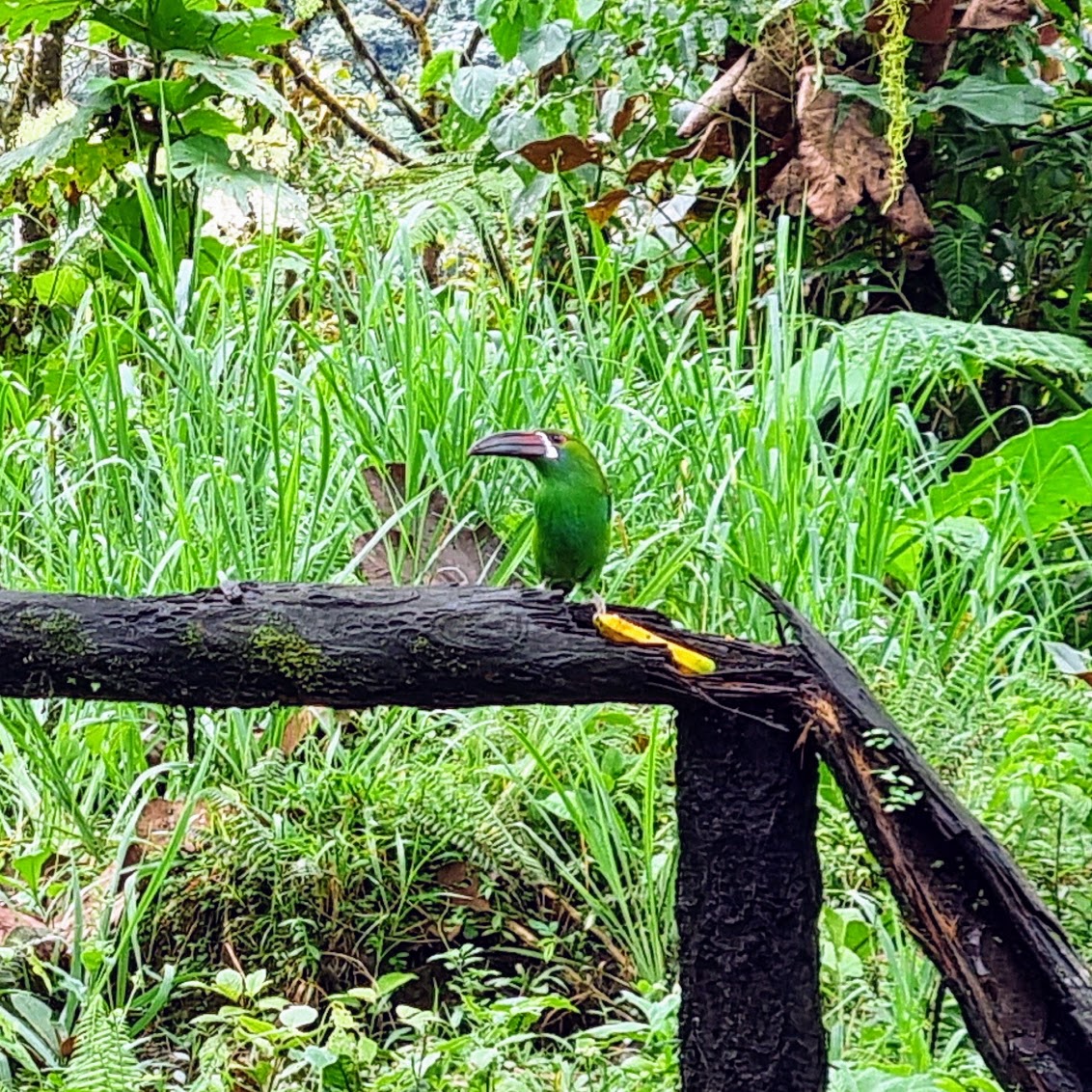 It was actually quite hard to spot animals from up here, but we did see my favourite (spotted by me, no less) the Choco Toucan, and also a few Toucan barbets, some trogans and of course lots of Mashpi tanagers.