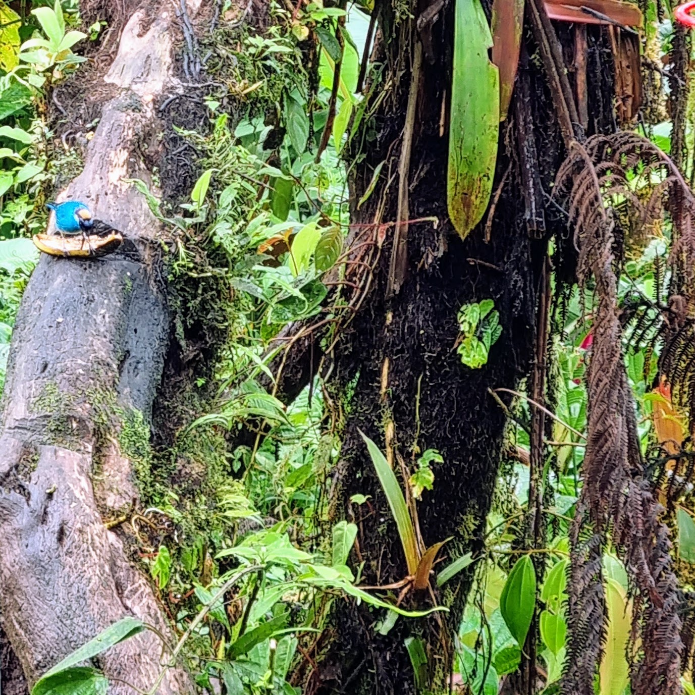 We walked back to the dragonfly station and did another loop to the end and back again. All the while trying our best to spit animals. Arcenio told me about the local sloths and an owl which he often saw. The camera traps around here had also spotted big cats, including pumas. But today all we saw were lots of Mashpi tanagers and butterflies.