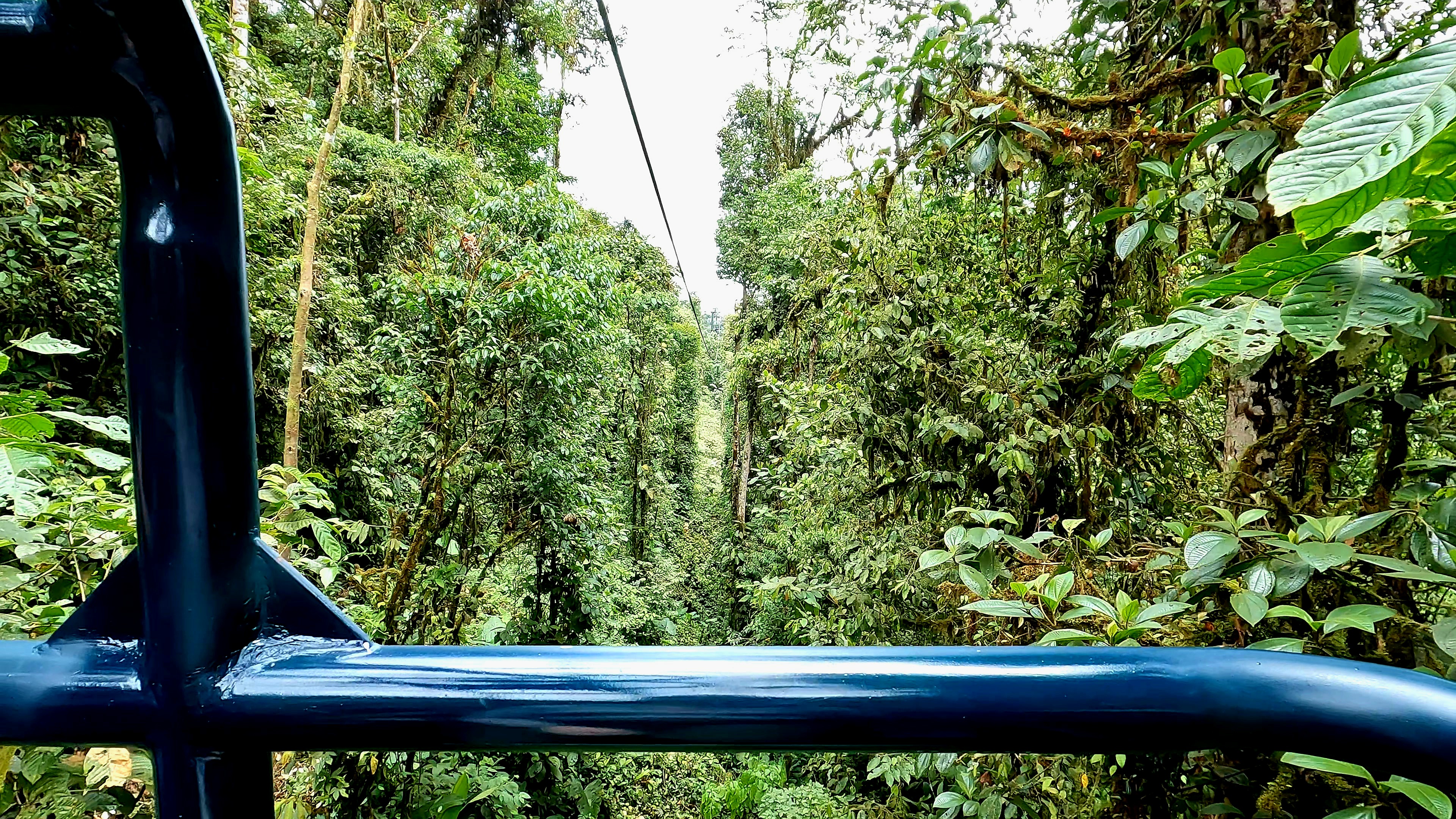 The Dragonfly at Mashpi is possibly the most amazing feature the entire reserve has, it’s a 2km long cable car which runs up to 200m off the ground in, and above, the canopy of the trees. It took a long time (and a lot of money) to construct, especially since they did not want to uproot any trees to build it.