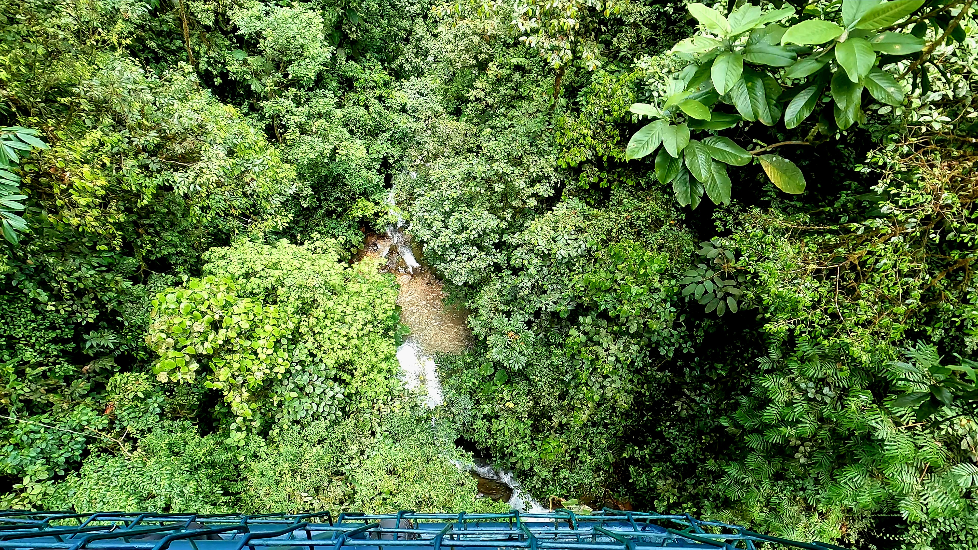 The Dragonfly was absolutely epic, at some points, I couldn’t believe how high up we were. The views of the forest below seemed endless. From tower 4 we first started moving away further from the hotel, deeper into the forest, before the cable car reached the final station and swung back around to make the return journey. The total ride took about one hour, with stops along the way whenever we saw something interesting. Arcenio pointed out another waterfall we could see from the cart; glass frog falls, he said that’s where we should go tomorrow – my final day. And it would be a private tour too since Jim and Jen were only staying 2 nights.