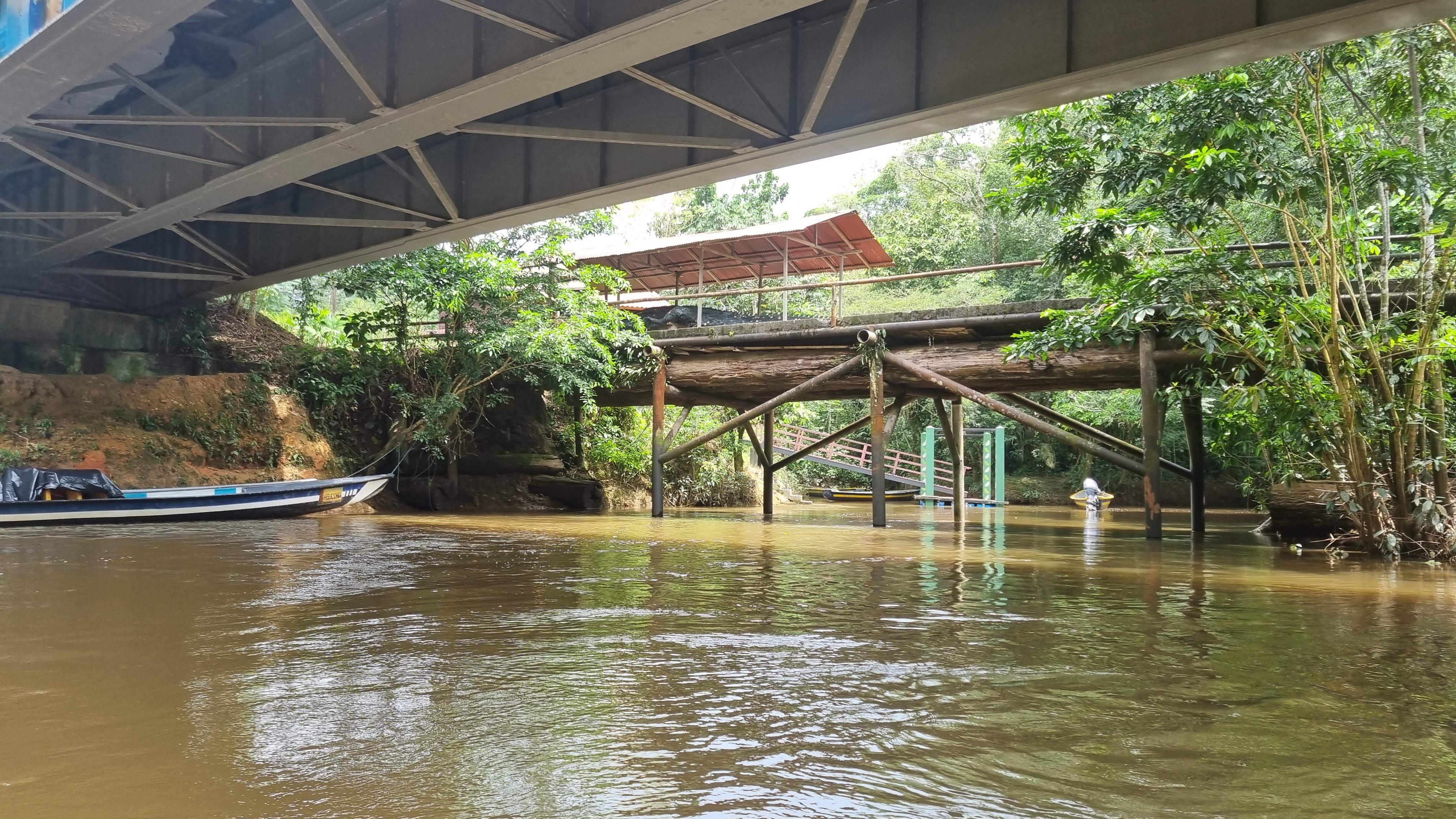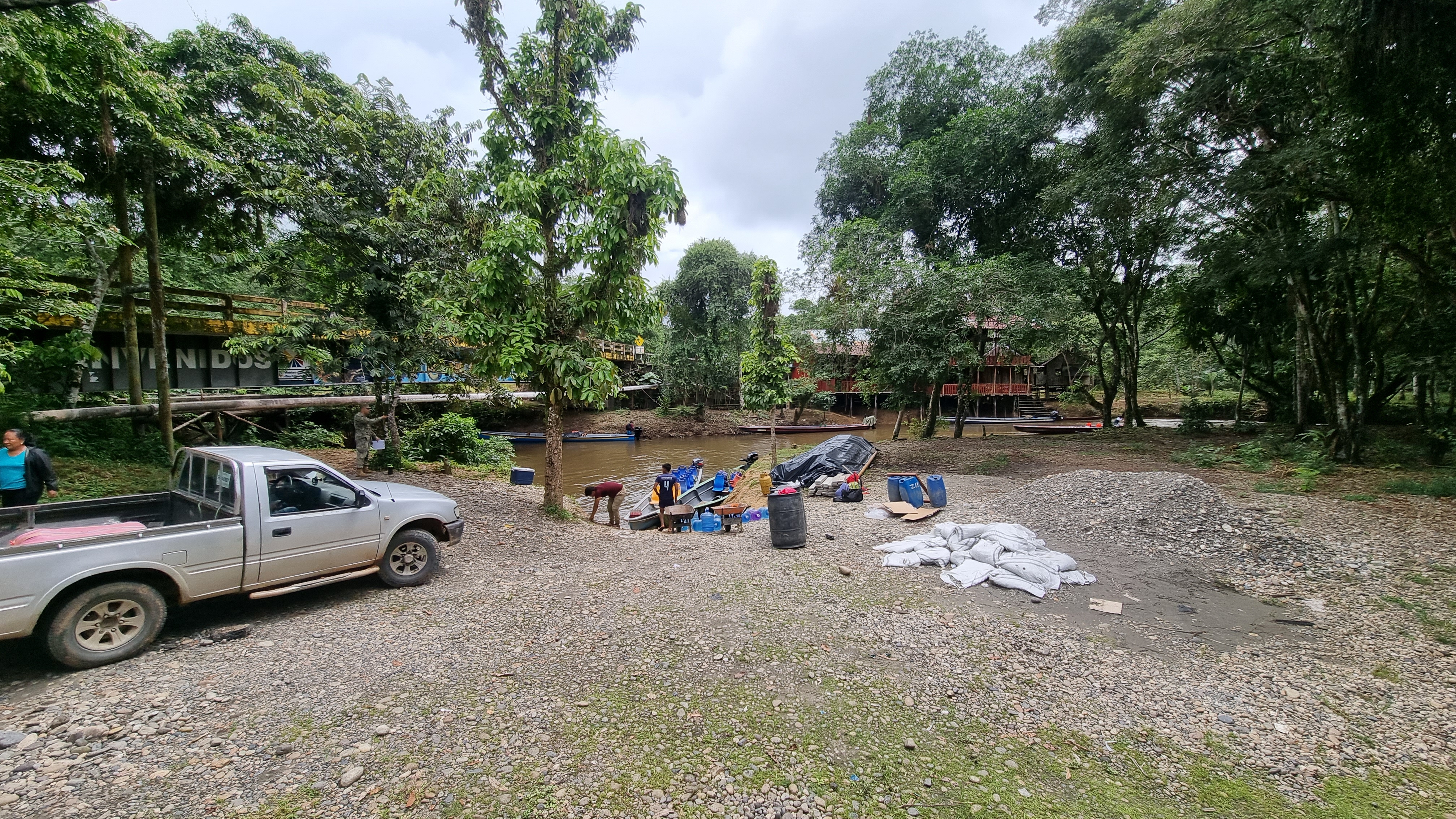The bus actually wasn’t that bad, it was quite quiet and not super busy and so I had a double seat to myself. The first bus stop in the morning was at a kind of service station, where I was able to grab a quick coffee and more snacks, and just before midday, we arrived at the Cuyabeno Bridge, which was the final bus stop and a bustling river port ferrying tourists to and from their various lodges in the region.