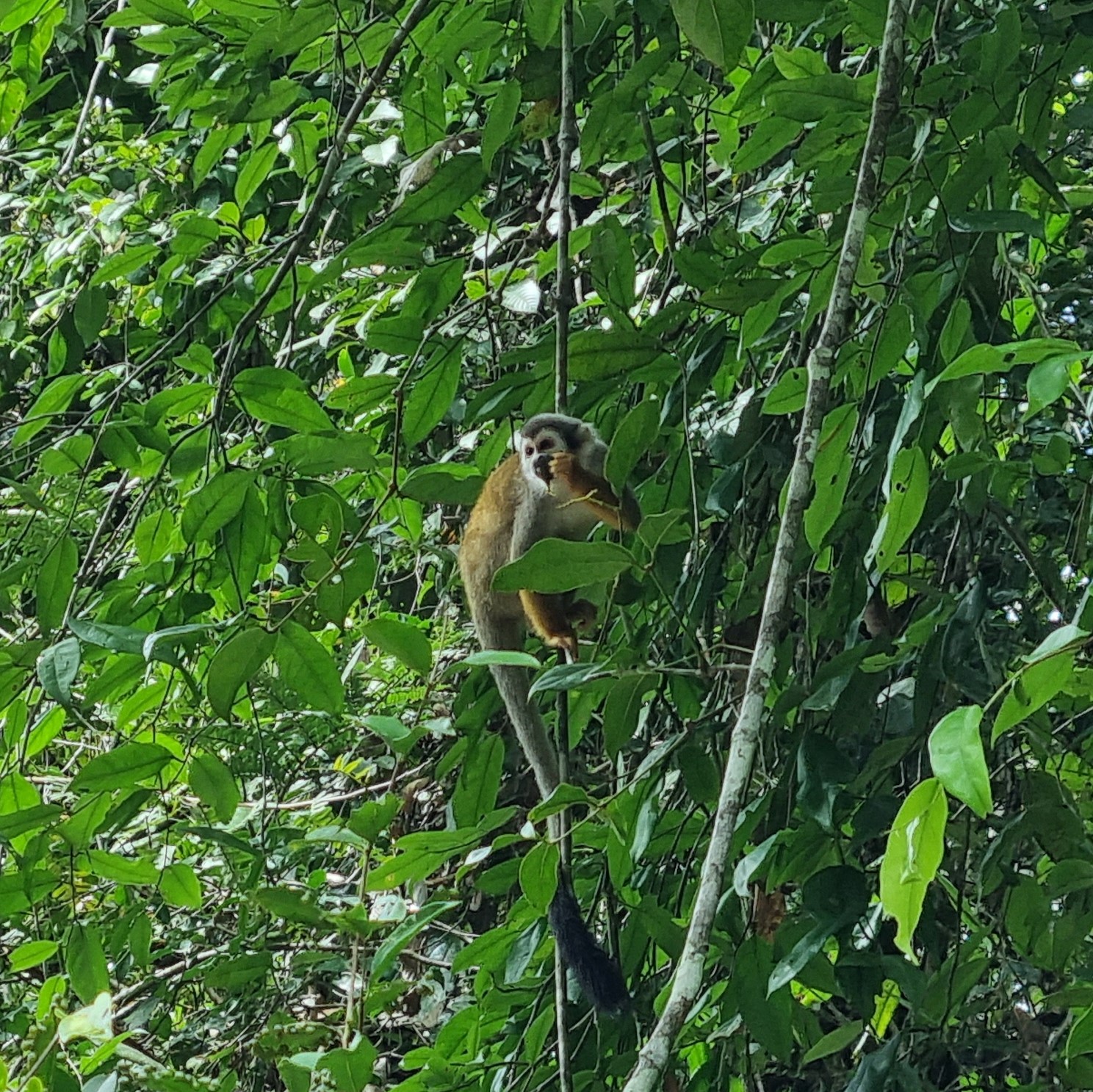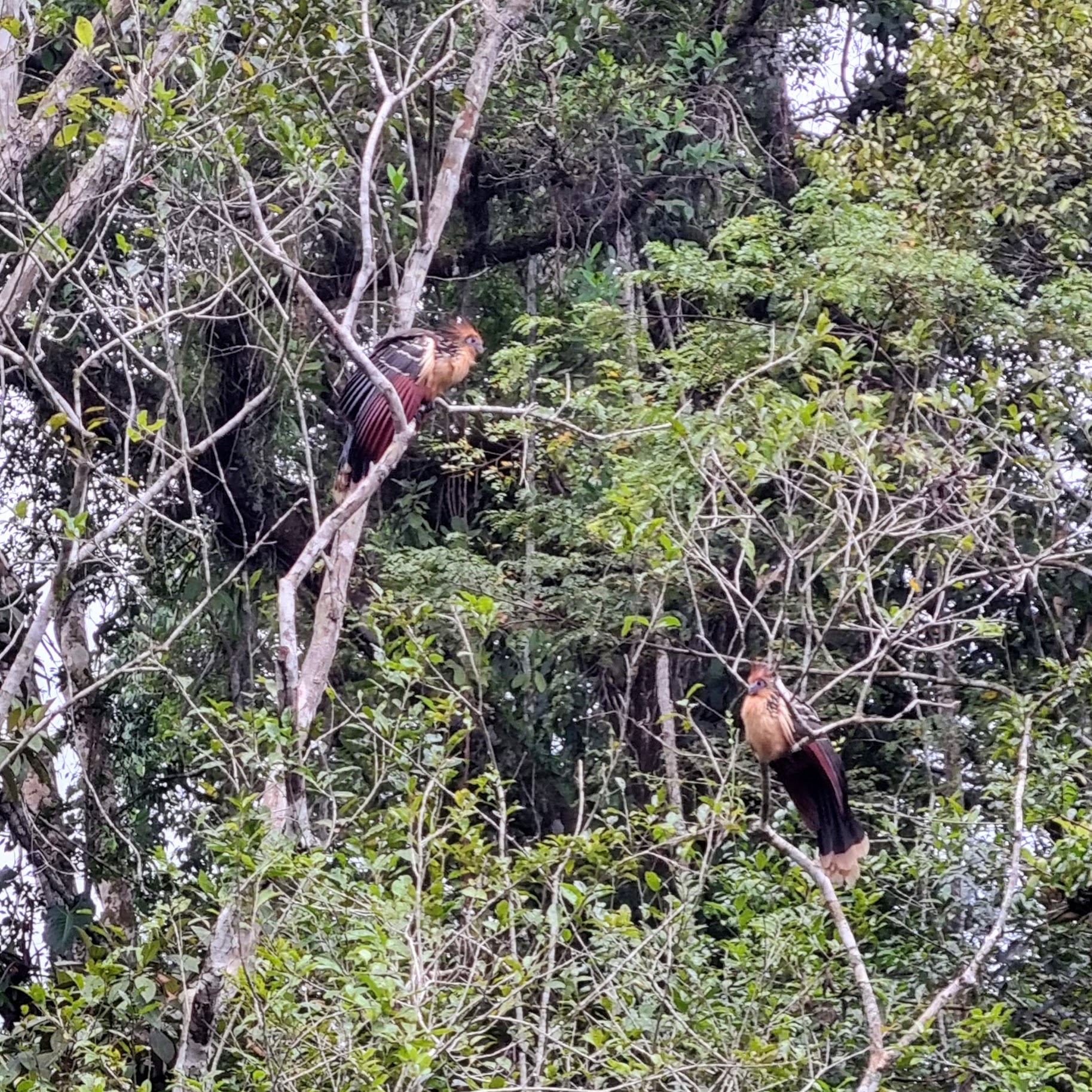 I had a delicious breakfast and then was back out on the river again, this morning we were going to go up river slightly and do a forest walk on land. The river in the morning was full of birds, but without a good zoom camera, I was instead glued to my binoculars. I saw a few different species of Trogon (compared to the ones I saw in Mashpi (I was getting good at spotting and identifying birds now ;)) and quite a few Aracari, including many-banded aracari high up in the tree tops. There was also A LOT of Hoatzin, which my guide called “stinky turkeys” because they apparently don’t smell or taste good (which is why they are not hunted and there’s so many of them!) lucky for them I guess! haha