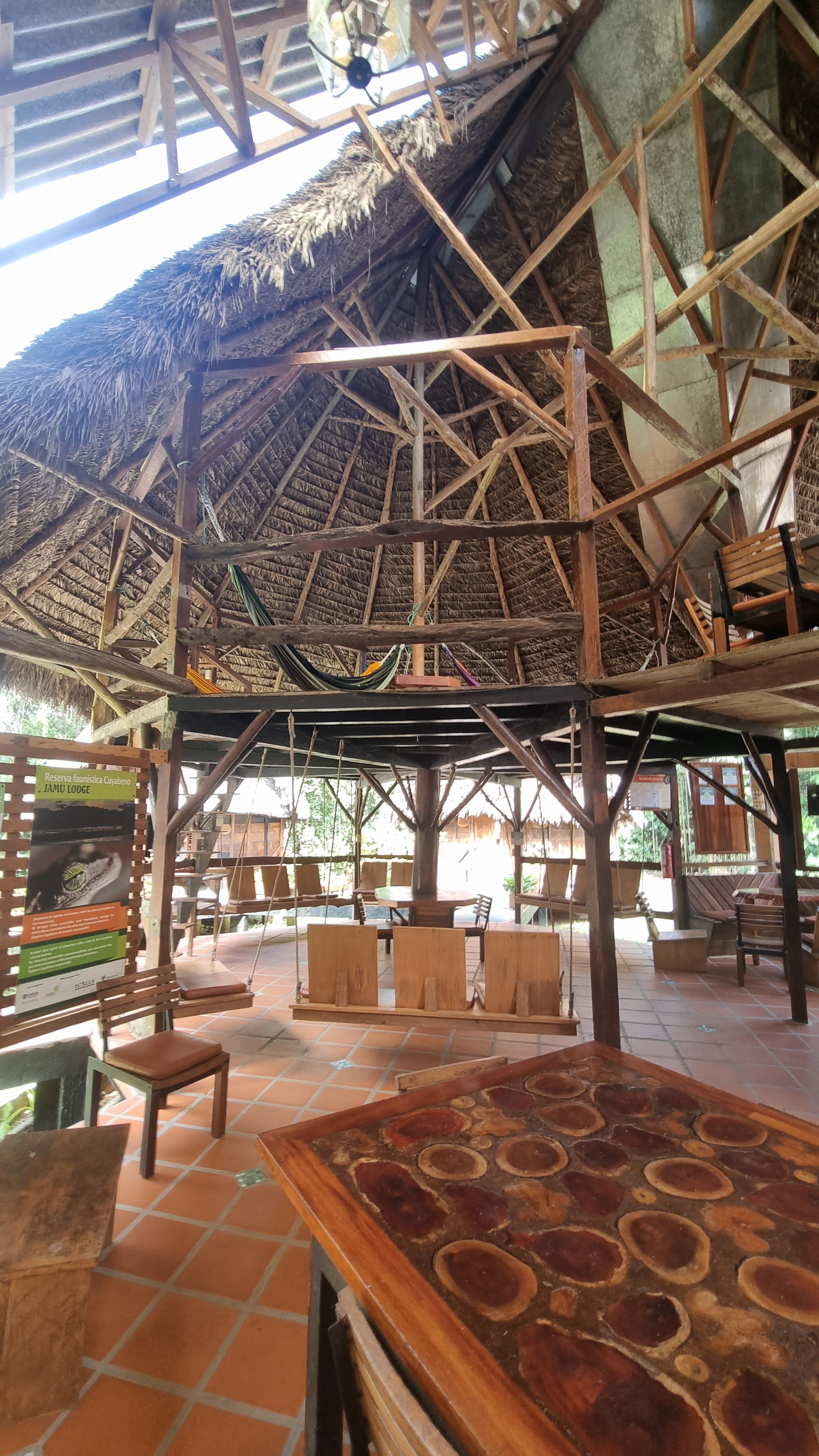 At the end of our journey, after seeing almost nothing but thick jungle and nature, we started to come across multiple lodges. Some looked basic, some more elaborate, some fronted the river directly, and some were set further back. We must have driven past about 10, with Jamu lodge being the last one. As we approached, I was so pleased with my decision as it looked the most beautiful and hidden from the river. A little port area was on the river front, but a winding offshoot of the river continued onward to the lodge, which was just absolutely stunning and very sympathetic to the surrounding jungle… What an amazing journey!
