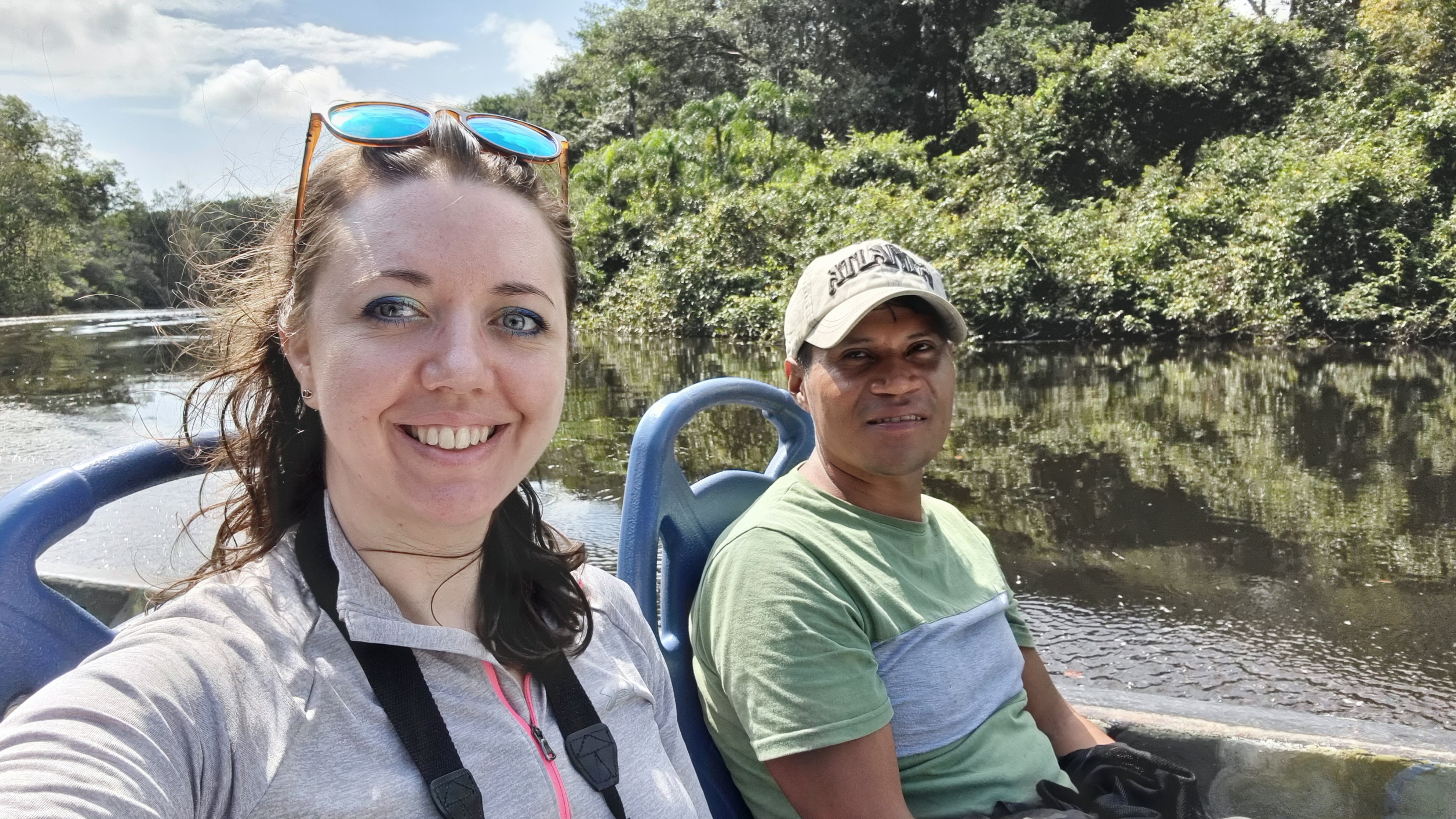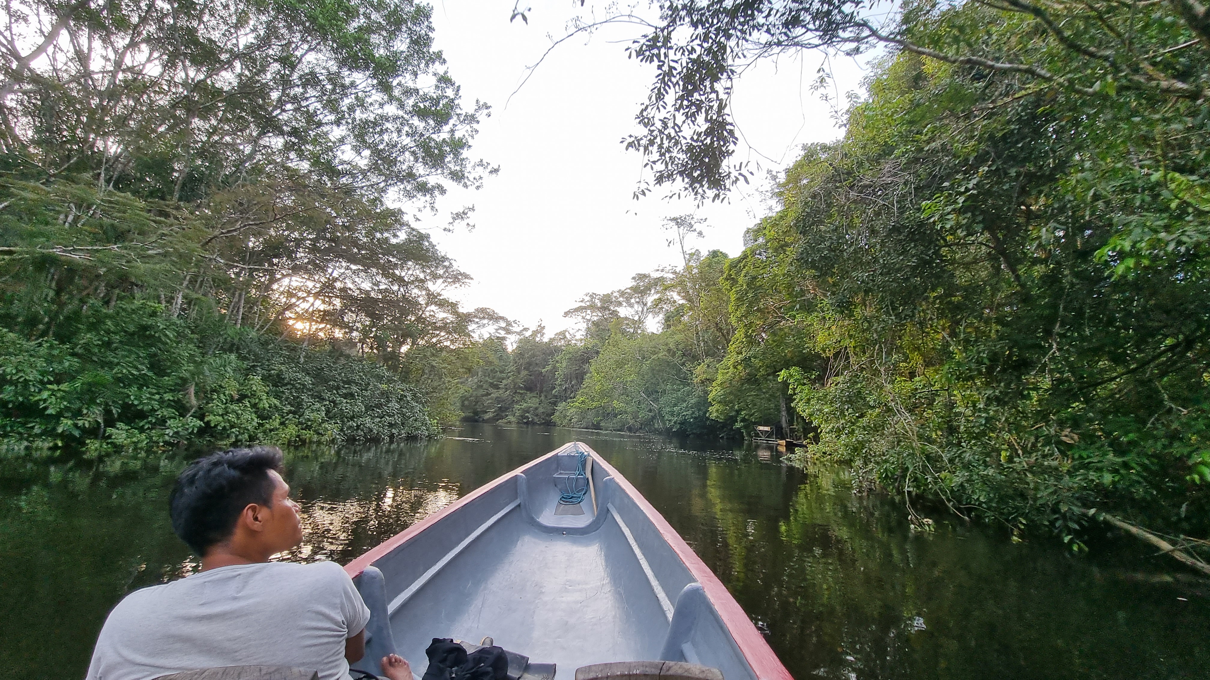 We searched (and mostly stayed quiet and listened) for any anacondas. The guide said that this was the best place to spot them, but we didn’t see any unfortunatley, before getting back in our boat to return to the lodge for lunch. On the way back we had a paddle boat instead of the motorboat, which was nice and tranquil, but with just the 2 of us, it was hard work, and in the equatorial sun (even creamed up to the max) I got quite badly burned!