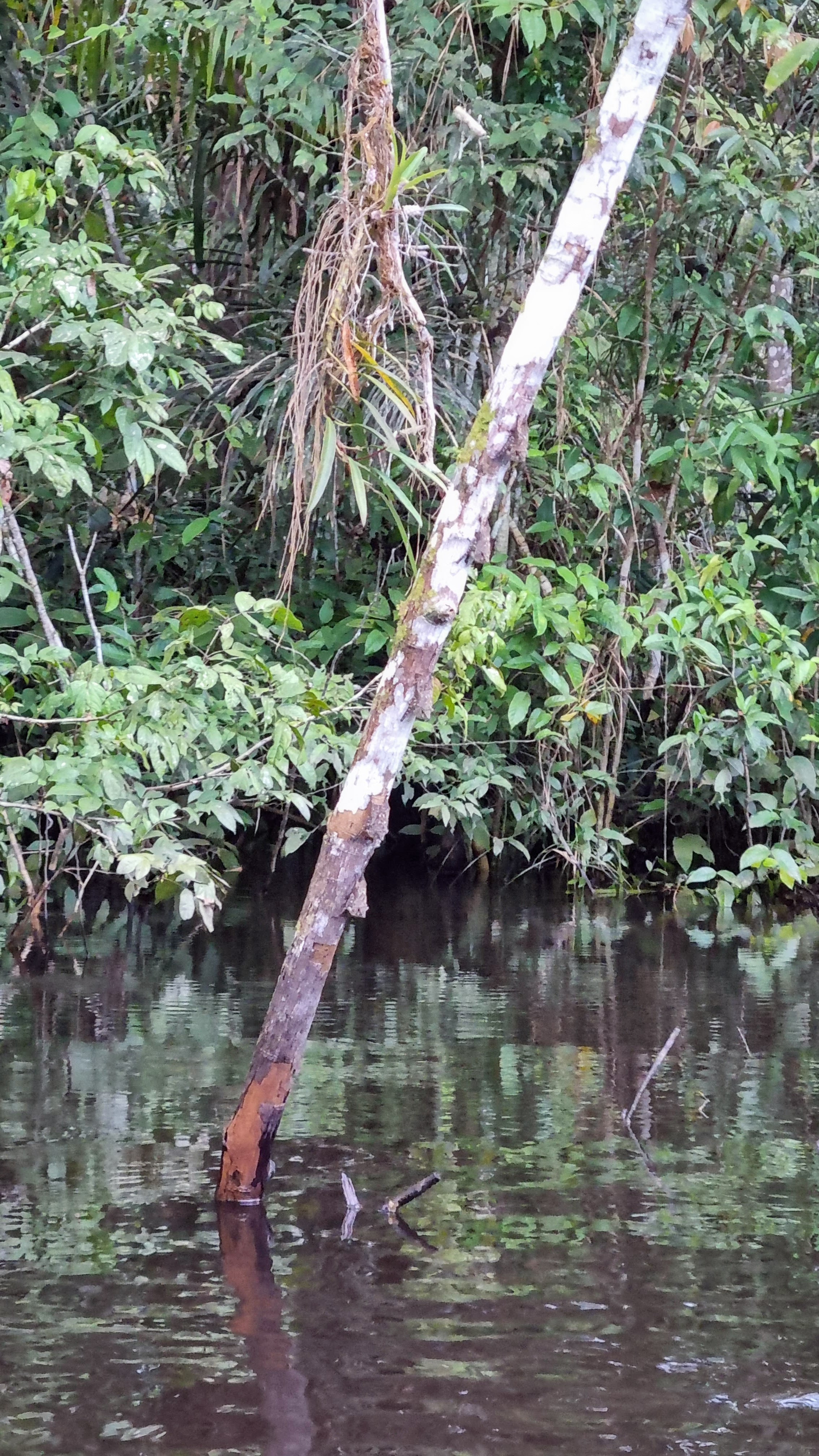 As we journeyed from the Bridge port of Cuyabeno deeper into the Amazon river basin, the water dramatically changed colour. From a chocolate brown out by the road, the further we travelled the river changed to a deep black, apparently the result of the rich soil and nutrients washed into the river by the rains of this wet season. The river was also wider and the jungle denser, but not only that, in this region of Cuyabeno, during the wet season, a huge lake is formed, which becomes approximately 10m deep. The guide told me I could swim there, but I would have to prepare myself for that!