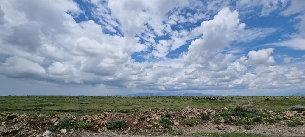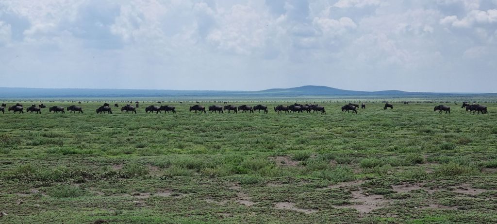 As we neared the entrance to Serengeti, we exited the mountains and hills, and all we could see from this point was just endless plains of Savannah. Which is actually what Serengeti means haha, “endless plains”. It really was, just flat and grass for as far as you could see. We started seeing the mega herds of wildebeest and zebra for which this area is famous. It was amazing. wildebeest for as far as you could see… They say the wildebeest has the nose and the zebra the brain, they travel together on this great migration around Kenya and Tanzania. The wildebeest can apparently smell the rains and will follow their nose, so the zebra follow the wildebeest. But they have better memories, so they remember the dangers along the way, like lions and crocodiles etc, and they alert the wildebeest. It really is a good partnership.
