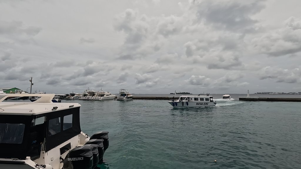 The flight was good, not too busy, and we had a row to ourselves. Also managed to sleep a bit. After landing in Malé, we freshened up a little and put some fresh clothes on, before catching the ferry from just outside the terminal over to Malé island.