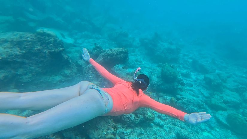 We spotted a couple of super cute baby sharks in the shallows of the beach, but my GoPro footage didn’t come out very well… ☹️ And then snorkelled the house reef. The visibility in the morning was quite good, but by the afternoon got fairly poor, however, we did see A LOT of fish.