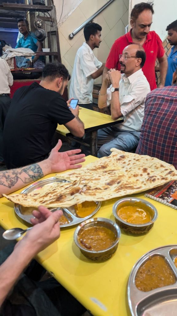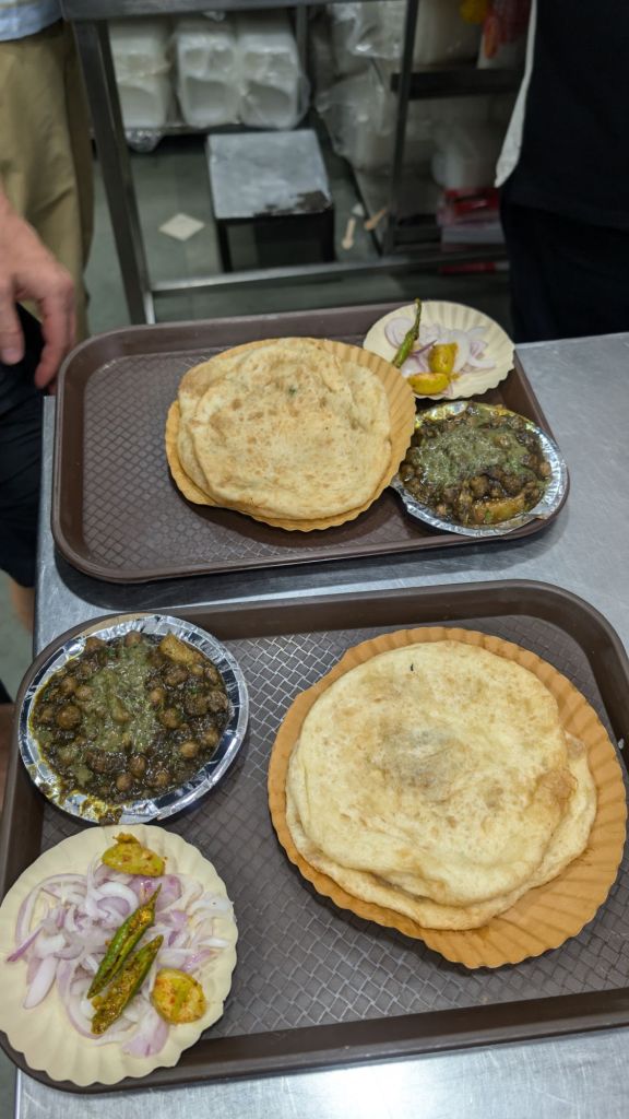 The next day we started by heading to a local favourite I’d read about online, Sita Ram Diwan Chand. They only do one dish; Chole Bhature, which is a spicy chickpea and spinach curry served with fluffy bread stuffed with paneer and Indian spices.