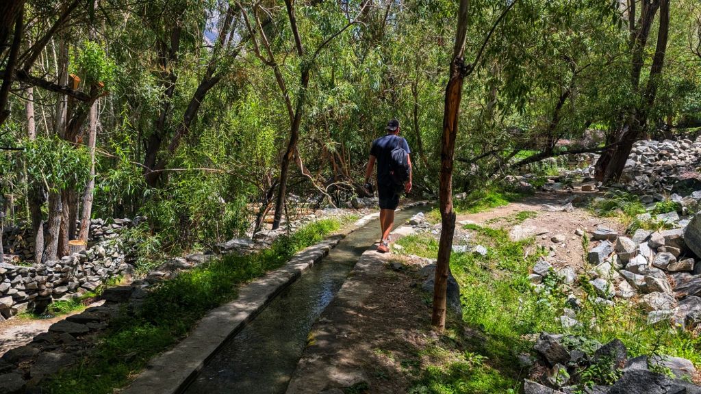 The village was lush and green and HANGING in apricots, all the trees were full and ripe. There were little man-made channels directing the river winding through all the lanes of the village. So all the walks followed the channels, it reminded me of Madeira and the levadas.