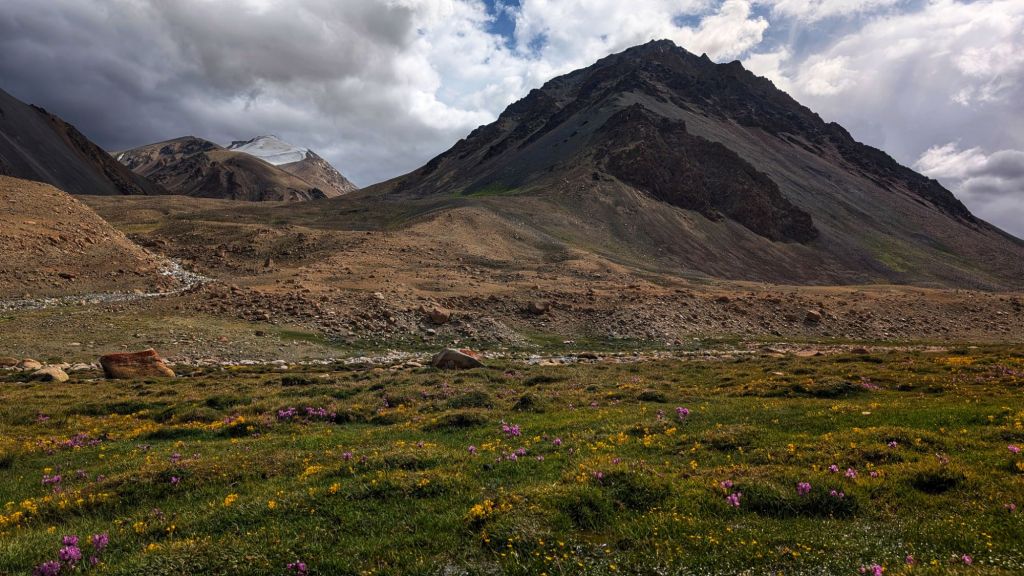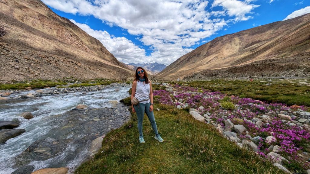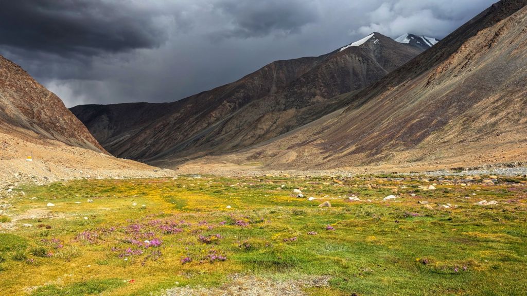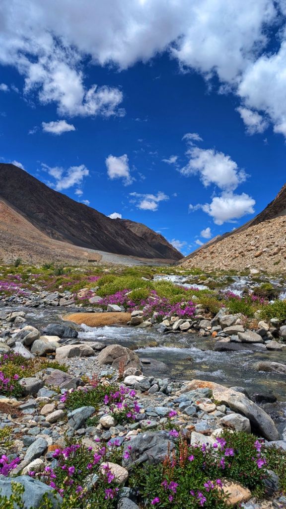 Nubra valley (where we were the previous day) was one of the places I’ve had pinned in my Google maps for a long long time, as it is often called “the valley of flowers”, which is why I’d heard of it, and we even saw signs along the road stating this… however, the road to Pangong from Leh (Tangtse Valley) had WAAYYY more flowers, in yellows and purples. It was much more beautiful than Nubra and we were so glad we got to spend more time on this road.