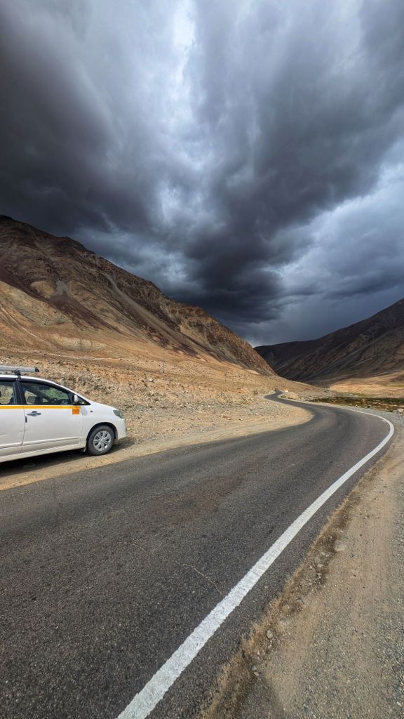 We did stop briefly in Leh to decide on the next steps, it was a long drive, so the driver wanted all of us to confirm we wanted to continue. All of us agreed, despite the shitty weather forecast. Mostly because the other option was to stay overnight in Leh and go to Pangong AND BACK in the same day.