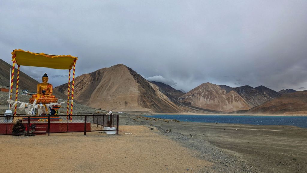 Even in the clouds and drizzle, the lake was stunning. So many different shades of blue. The lake is located on the opposite border of India, with China, and half of the lake is actually in China, so there was a strong military presence here, and you’re not actually allowed in or on the lake. Not that you’d want to because it was freezing haha.