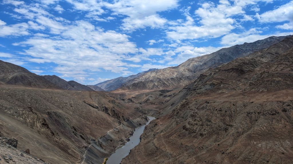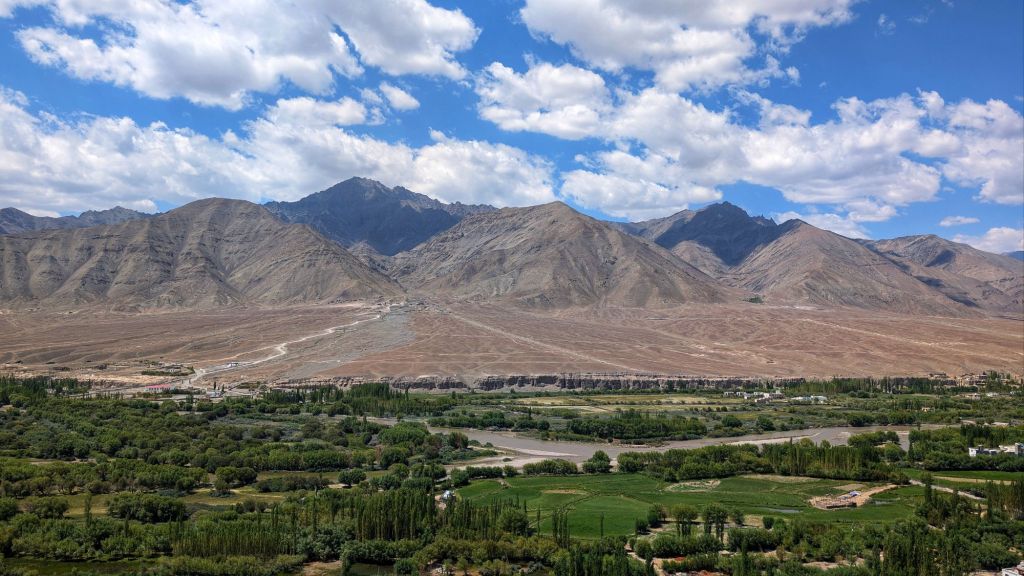When we woke up, there were some local signs of light rain, but nothing major. However, the driver told us that the direct route from where we were to Pangong lake (our destination) was all flooded and impassable… Due to a cloud burst! Therefore, our only option to get to the lake today was to return to Leh first! Then go out again from Leh. This would add an extra 140km of driving to our day!!