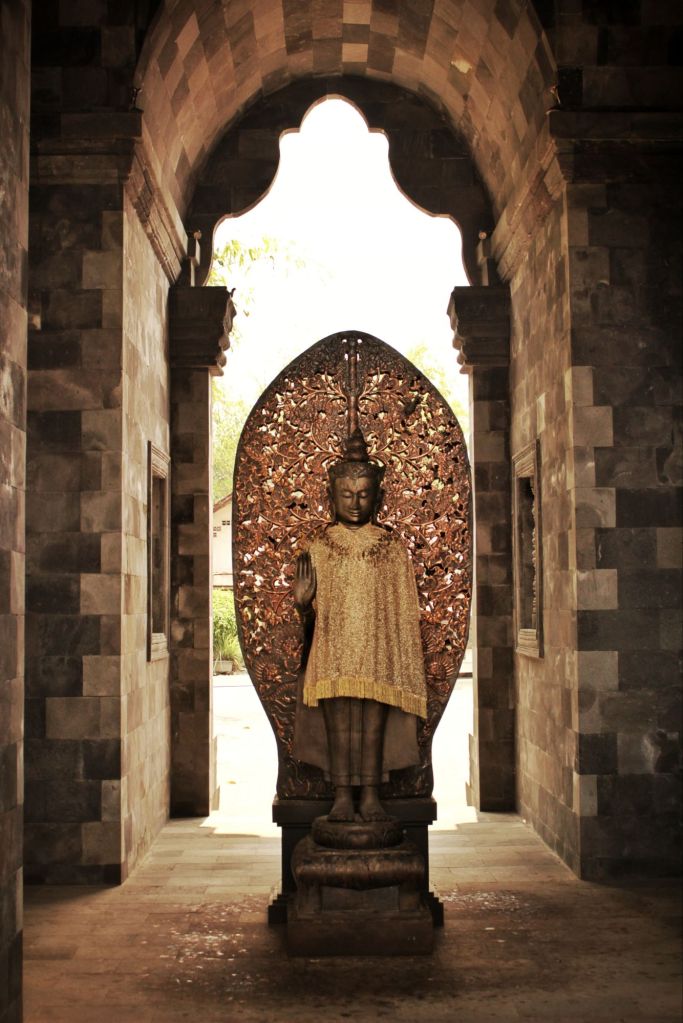 On the way back to town, we stopped at a smaller temple just down the road, Mendut, which had a very impressive 200-year-old banyan tree on site and a striking temple with prangs that reminded me of the Angkor Temples.