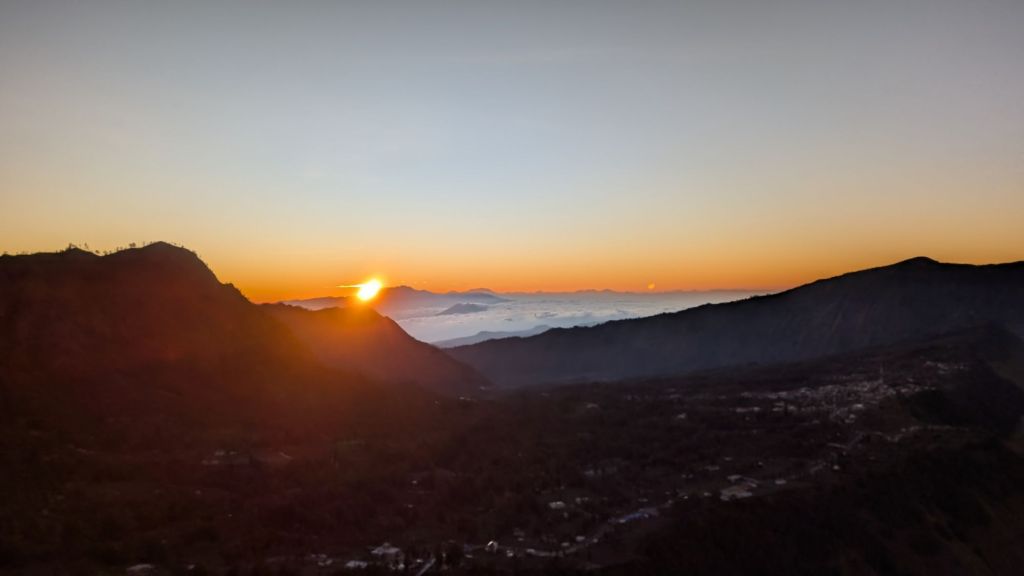 The rest of the way to the viewpoint was on foot, about 30 min of uphill walking in the dark but it wasn’t so bad. We eventually made it to the Seruni viewpoint and camped out waiting. We still had a few hours til sunrise…