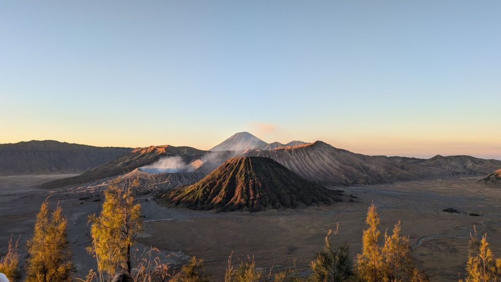 The view point overlooking bromo was actually facing West, so actually the sunrise was behind us. As soon as the sun came over the horizon, it lit up the volcanoes and they looked amazing!