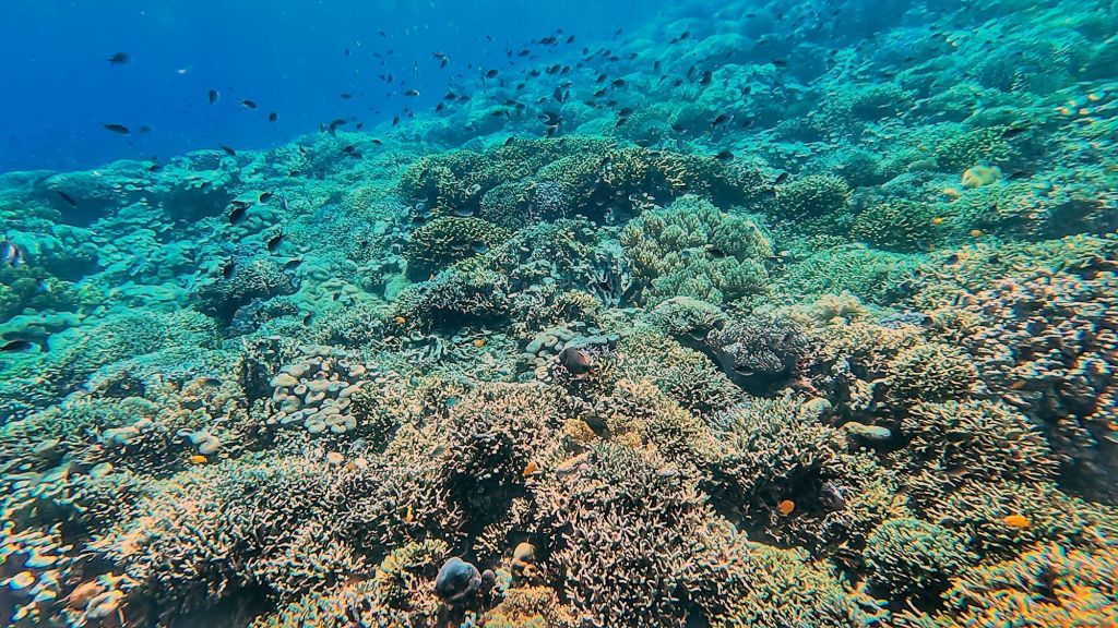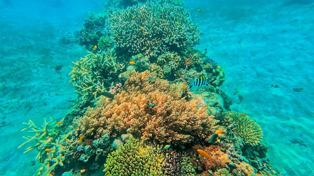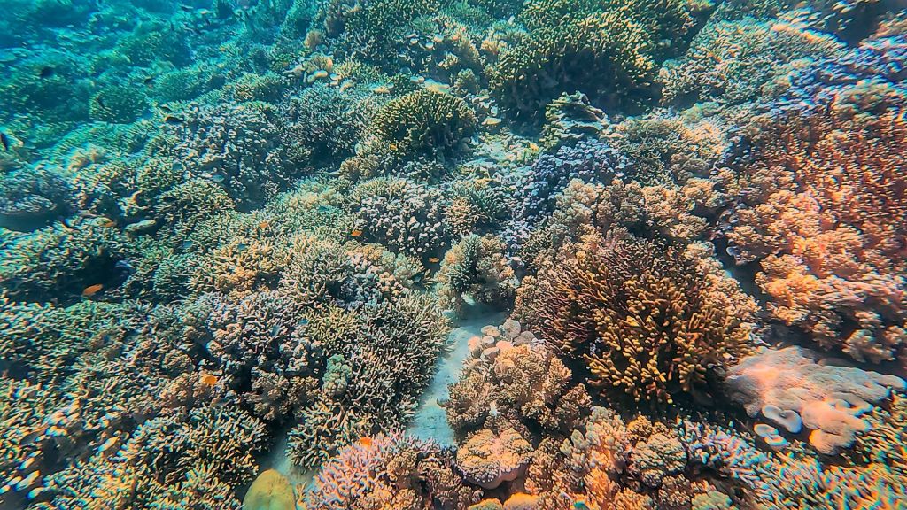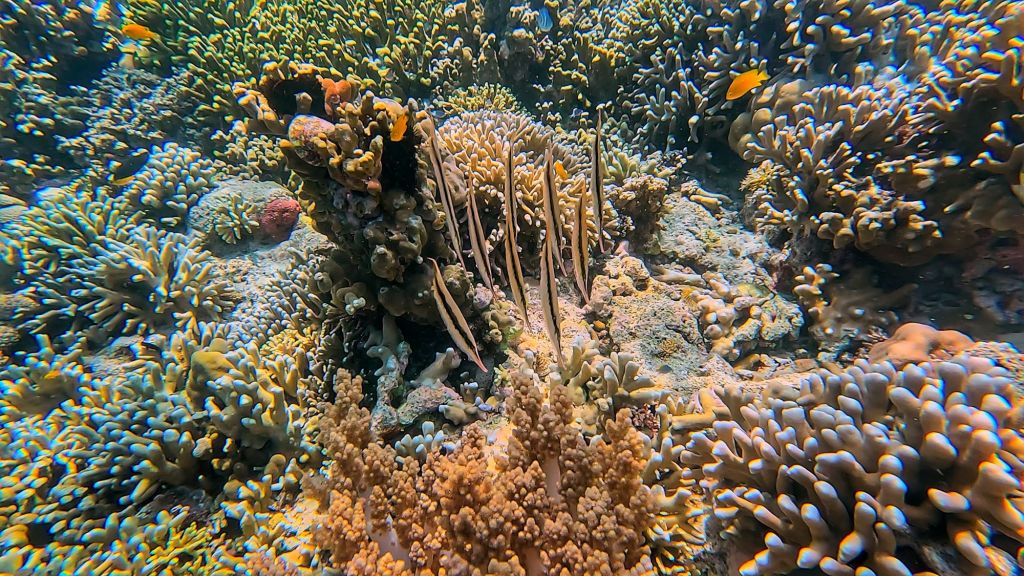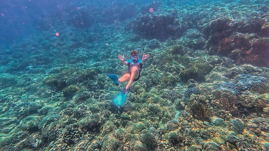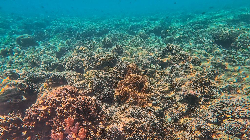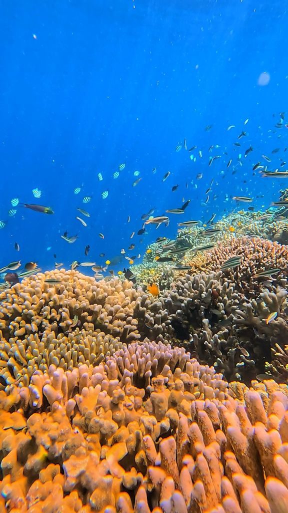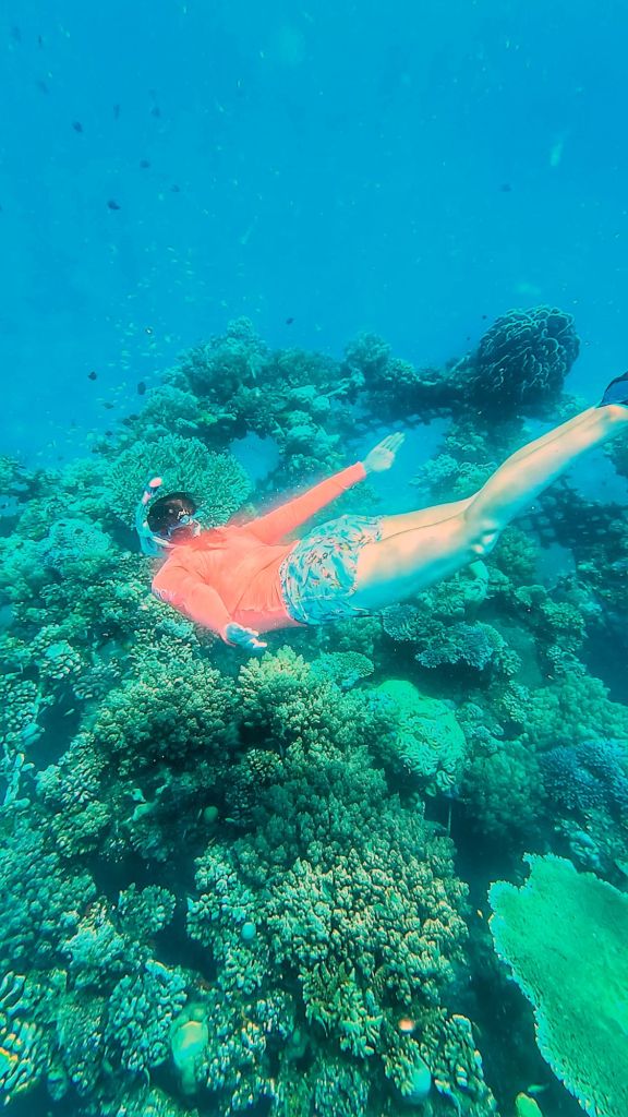 We made it to the first spot just off the north of the island, which was a wonderful coral garden, and to our surprise, the clarity and visibility was AMAZING. Probably the clearest water we have snorkelled in on this whole trip. You could see a good 20m, maybe more, it was so good.