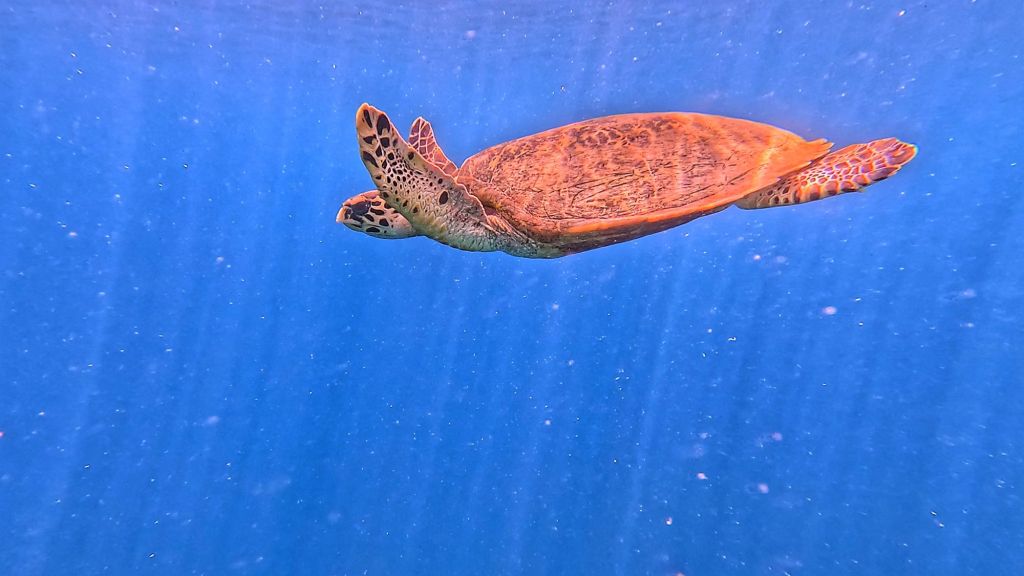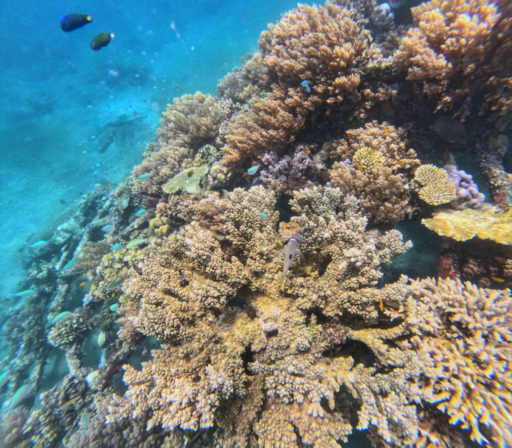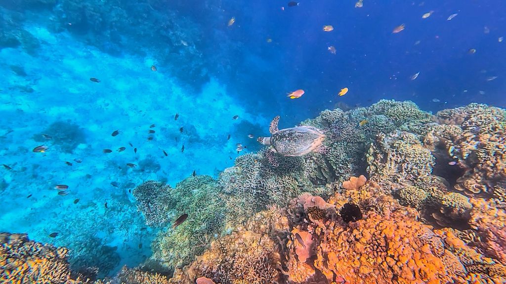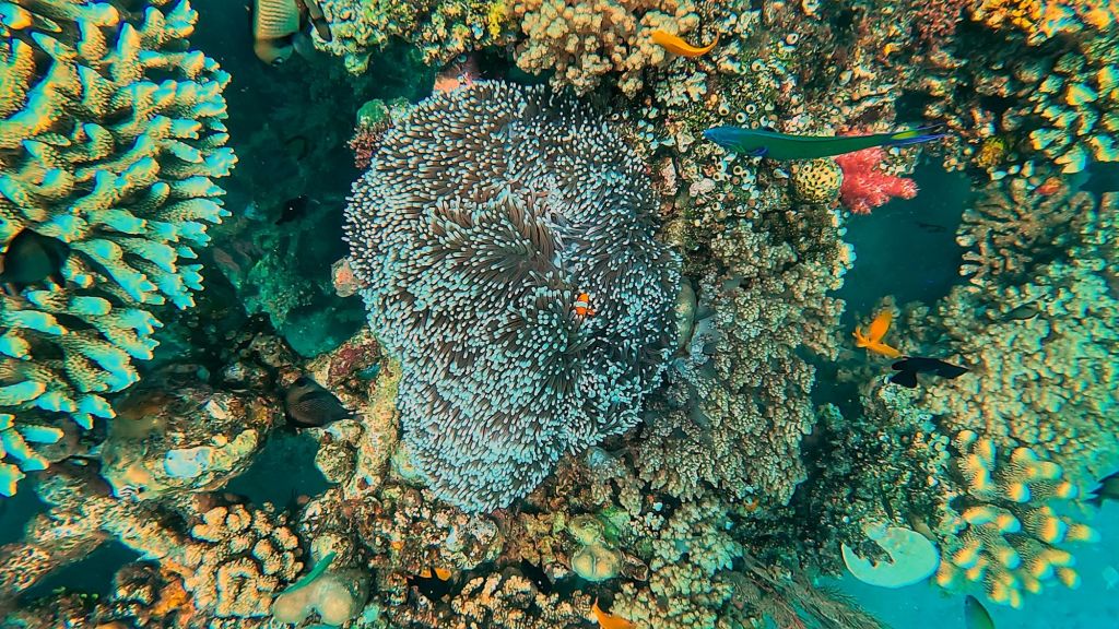 We saw so many different types of corals, actually the reef was very very healthy and continuous, with no bleaching that I could notice. And we saw some unique fish, plenty of titan trigger fish, clownfish, and a couple of turtles too!