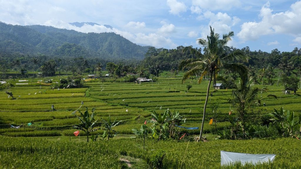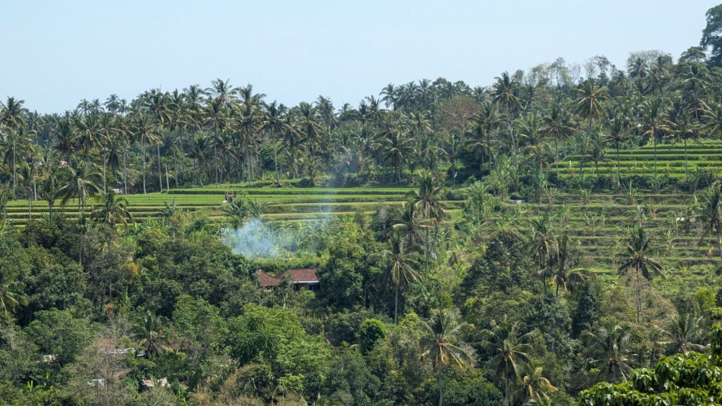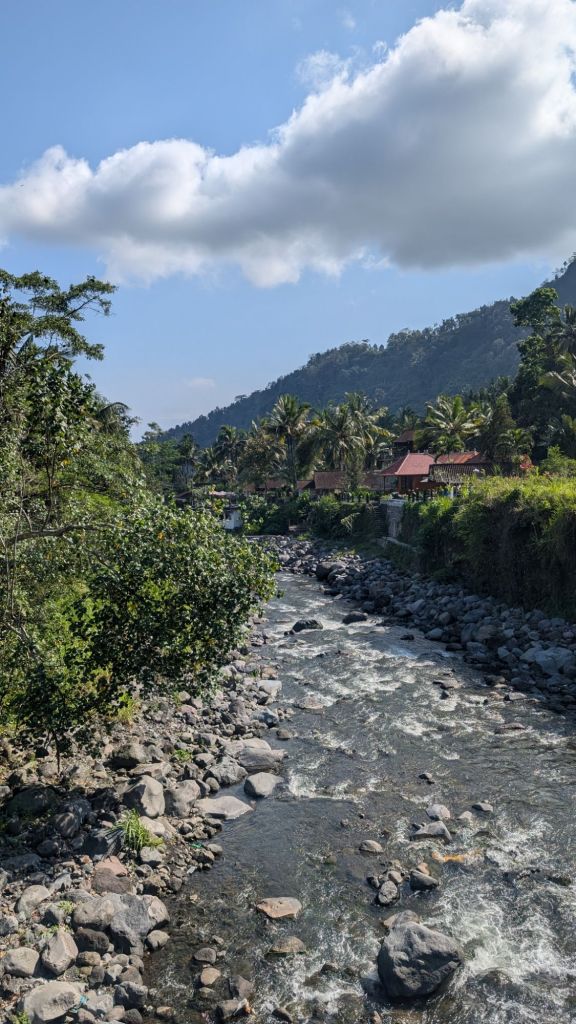 After a shower and packing up we headed out again, and after enjoying the drive through Sidemen so much the previous day, we headed back there for the night. Taking our time and enjoying the roads. We stopped at the vegan organic farm again for lunch, and then finally made it to our accommodation for the night. We booked a nicer hotel this time, with an infinity pool looking out towards Agung, but last minute on booking.com (and off season rates etc) it was only £25 a night (£5 over budget) but we thought it was worth a treat as we are nearing the end of our trip…