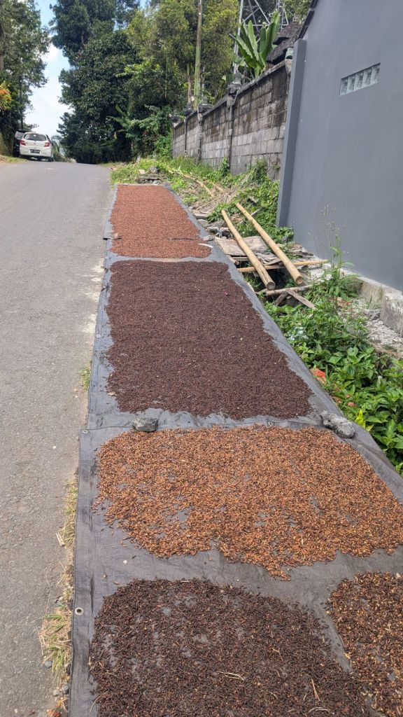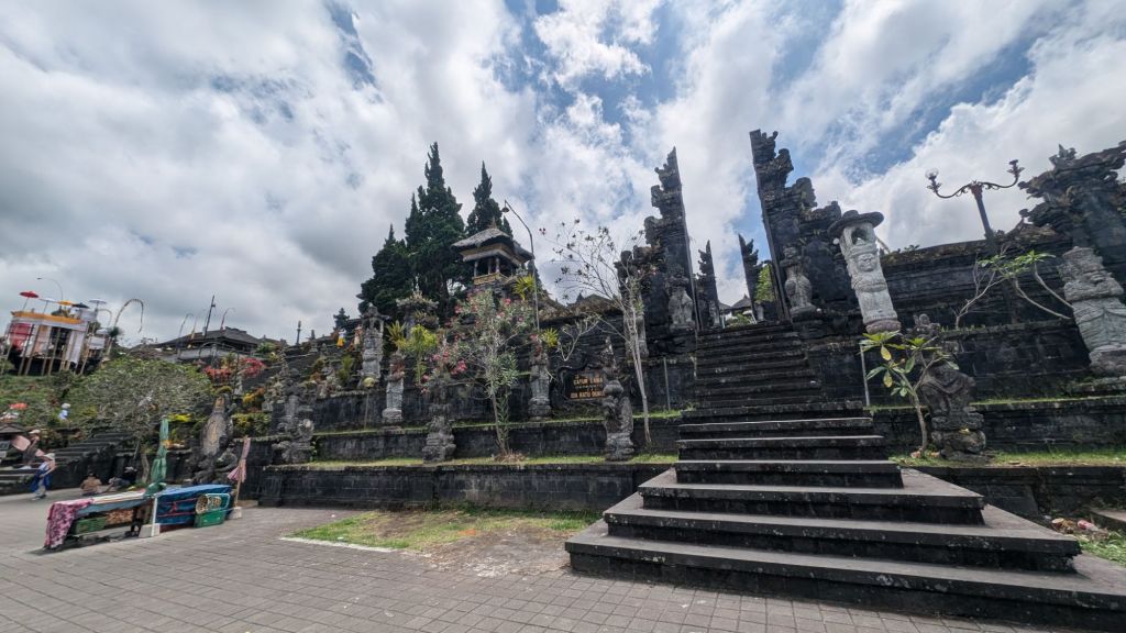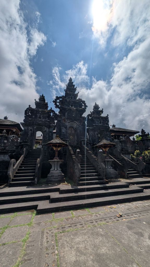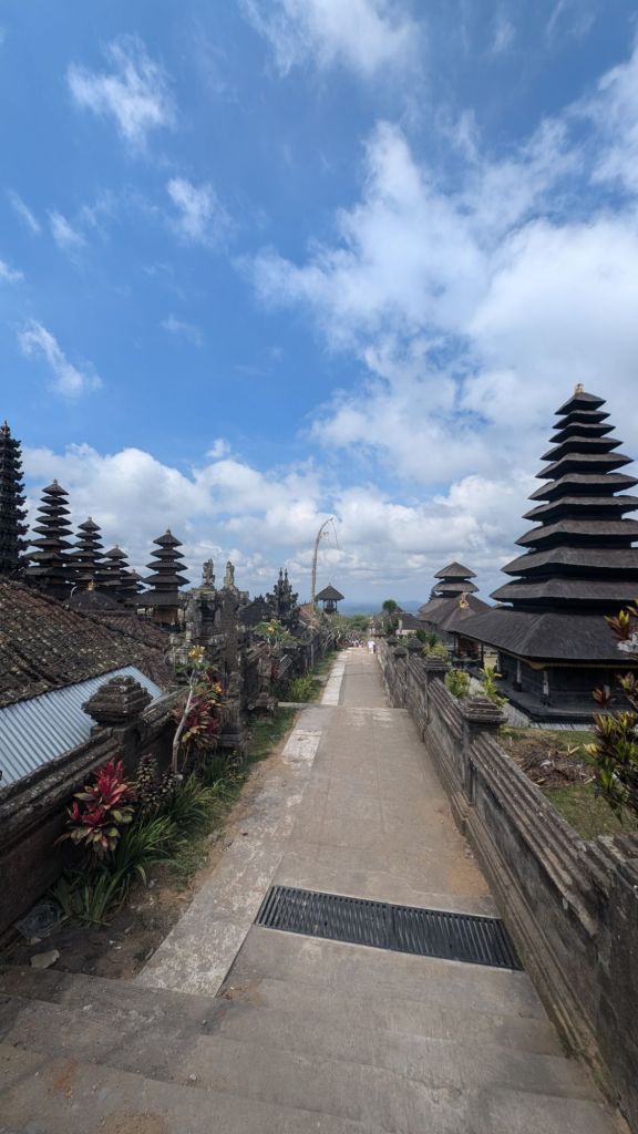 We got up early and headed up to Besakih temple. It would be my 3rd time here. It’s the most important temple in Bali, known as the mother temple, it’s on the slopes of Mount Agung, which is an active volcano, and there has been a temple here for 1300 years. It’s changed a lot since my first visit in 2014, and the experience we had this time was quite poor. We parked up, bought our entrance ticket (IDR 150,000 each) then got a little shuttle to the top with our assigned guide. When we hit the top people swarmed us immediately trying to get us to buy offerings, sarongs, drinks. One lady said to Dave, you “have” to take this offering or you can’t get in… I said that’s not true, I’d experienced this last time. Dave mentioned to our guide that locals trying to get money out of tourists at a holy site was shameful, and he almost immediately left us on our own, and told us to walk by ourselves. We think because he realised then that we would probably not be giving him a good tip. (In 2018 when I came here I did give our guide a tip and he laughed at me and asked for more…).