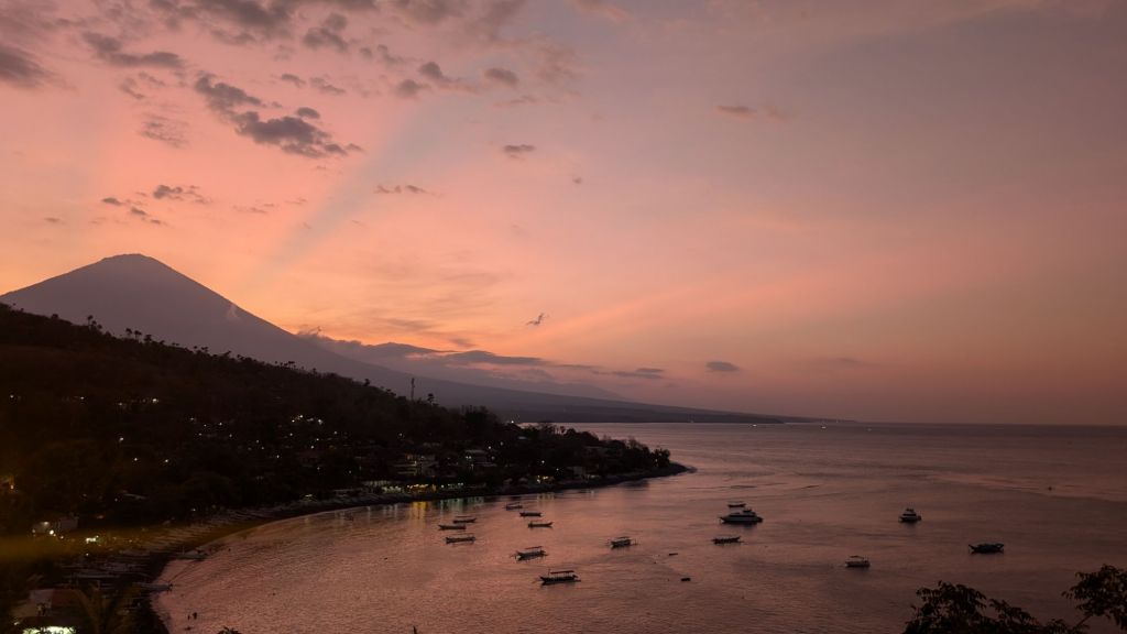 We eventually got to our destination for the night, Amed, in east Bali. Known for it’s amazing diving and snorkelling. I really liked it last time I was here, but it seemed to have developed a lot since last time. I was trying to find a the viewpoint where I got this pic 10 years ago, and then realised that there was a huge beach club built on that site now…