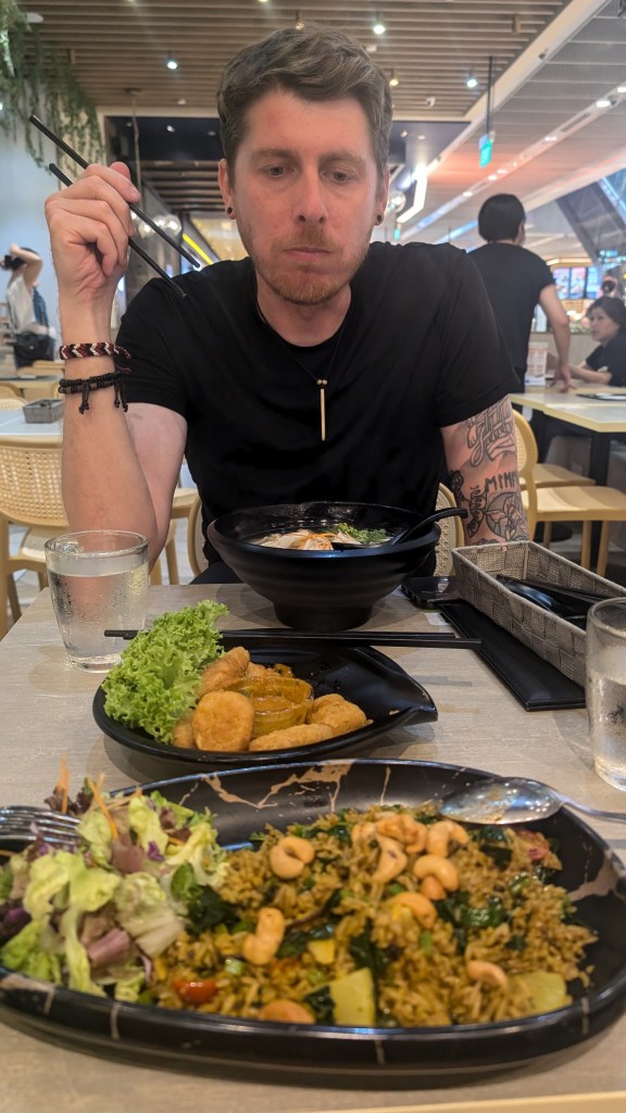 After checking-in we went for a walk around the city, first to the mall for some delicious food, and the most amazing vegan nuggets ever! Then we walked towards the marina and towards part of the city which was used for the F1 grand prix. It was only a couple of weeks ago and a lot of the infrastructure was still here. We are both quite into F1 at home, and actually a little bit gutted we seemed to have missed one of the best seasons in recent history! Only a “bit” gutted, I think we’d both rather be travelling than at home watching F1 haha!! But being on the track here was very cool!