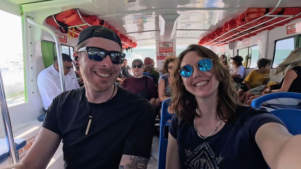 Still on land, we officially left Mexico then boarded the boat to Belize. And whilst we waited we think we saw some bottlenose dolphins in the water, or it may have been a pilot whale… We only saw glimpses of it, so we’re not sure!