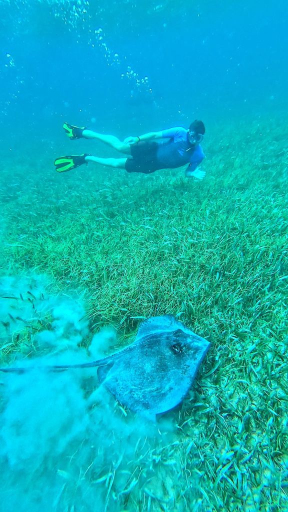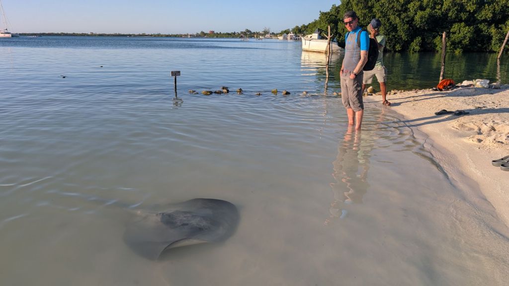 The time seemed to fly at Hol Chan, and soon we were back on the boat moving to our lunch spot. After eating we jumped in the water and there was loads to see here as well. Loads of Southern rays again, and also more eagle rays, which are so cool, flying through the water with their super long tails!