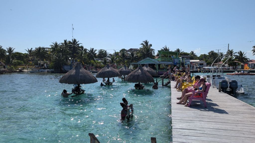It took 2 hours to get to the first stop of San Pedro Town on Ambergris Caye, where we had to get off the boat and go through immigration. Many of the people were also getting off here too. After breezing through immigration and laughing with the border control – we’d ticked “yes” to the question about “are you bringing in food”, because it was true when we filled out the form, but by the time we got to Belize, we’d eaten all our snacks and actually had none left 🤣