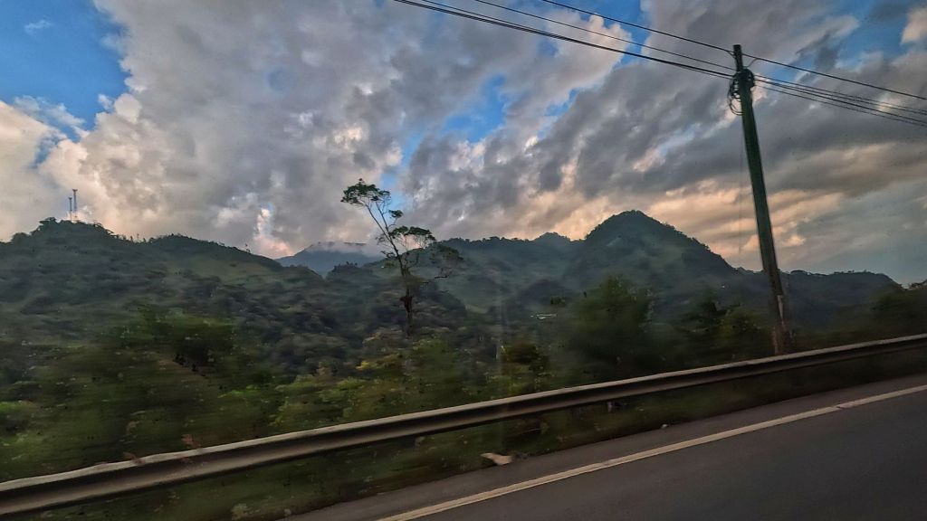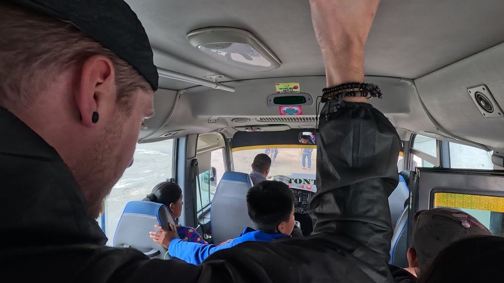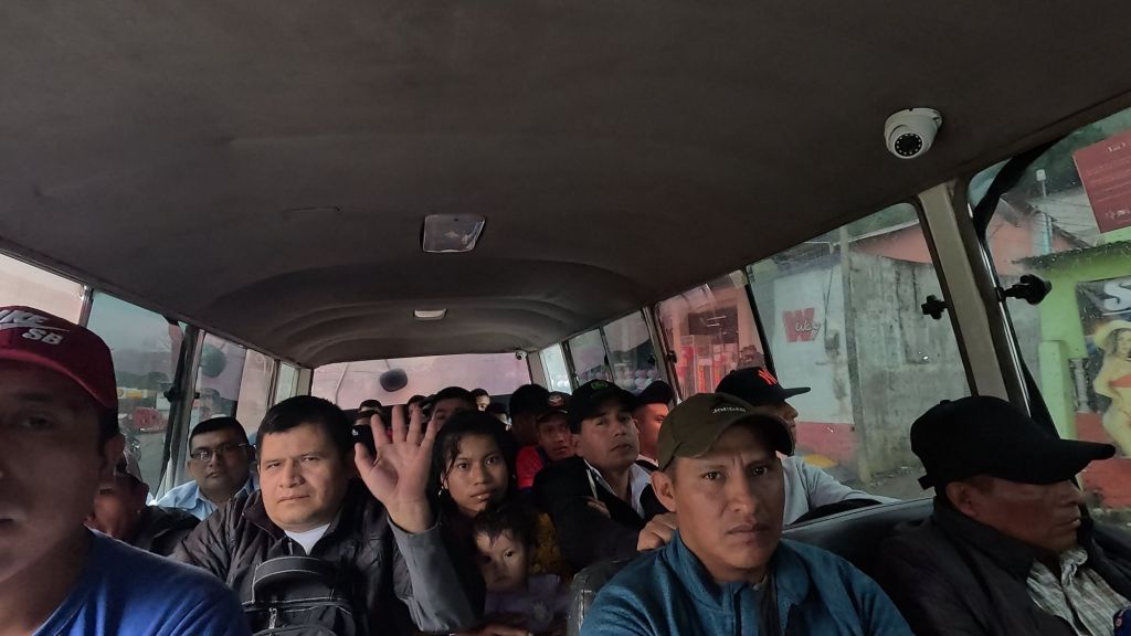 We then checked out and headed back to the bus stop to catch a bus going back to Cobán… We weren’t even at the bus stop yet and one was coming to we just waved for it to stop and it did, we jumped on, and it was a jam-packed microbus!! No seats left, and only enough room for us to stand with our backpacks on… But luckily only for the first 5 min before we hit the first town along the way. A couple of people got off here, so we were able to rearrange the bags and find seats. It was a hair-raising ride back to Cobán, as our driver seemed to think he was competing in a rally 🤣