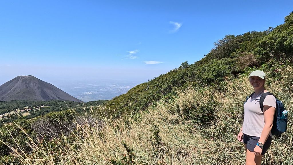 The walk was also not that challenging, but in the sun and heat we got very sweaty and got to the top absolutely soaked in sweat! The views were worth it though. On one side you can see down into the caldera which has a steaming sulphur lake in it, and eery green colour, and on the other side you can see lake Coatepeque, and another volcano Izalco, plus you could even see all the way to the Pacific ocean, and we could even make out the waves hitting the shoreline, it was pretty amazing!