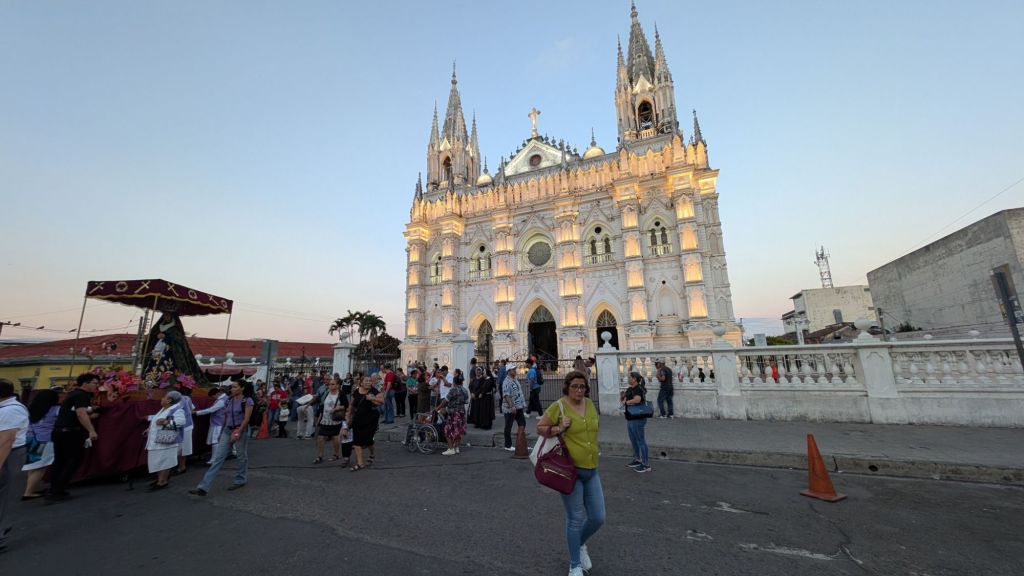 That afternoon after we returned (and showered to remove the layer of sweat and dust) it was super hot in Santa Ana and we were also quite tired from the walk, so after a quick food stop we headed to our AC room to watch the final day of the masters golf (haha) only heading back out in the evening for some little ceasars pizza and to visit a few churches which were lit up.