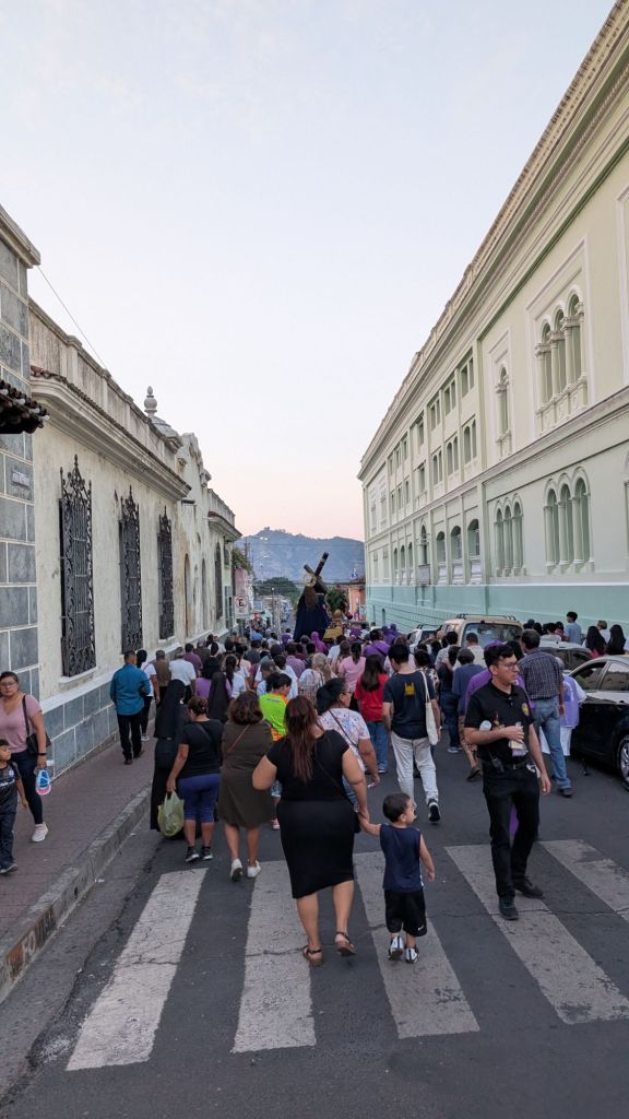 We stayed near the main central square with the cathedral, and in the afternoon/early evening after arriving we saw a small Semana Santa procession, nowhere near on the scale of Antigua, but still interesting. We had pupusas for tea, then went back to the room for an early night as my migraine was still lingering.