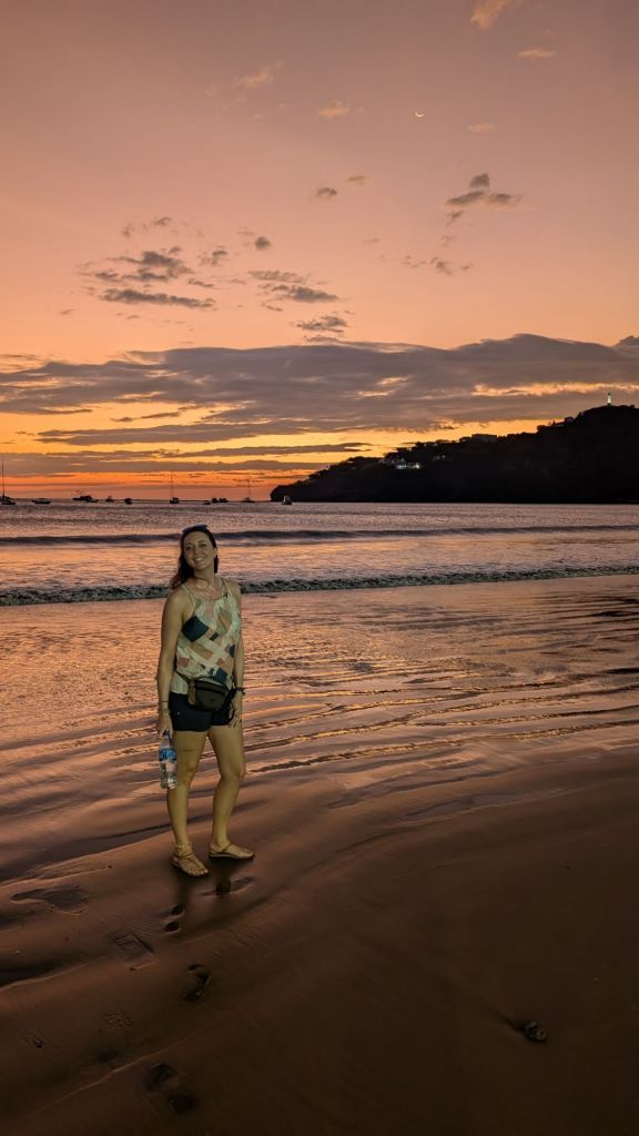 On the second day I was back to normal so we arranged a taxi to take us to Playa Hermosa and back, one of the nicest beaches in the region. We went there pretty early (since San Juan is a party town, things seem to start later here) and it was so peaceful and quiet in the morning. We took it in turns to go and play in the waves and were both the only ones in the water!!