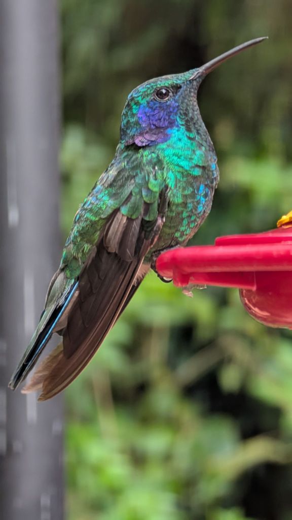 We left the park, but the birding wasn’t over just yet, as we headed to cafe colibri (hummingbird) on the way back. Here we saw 6 different species of hummingbirds on the feeders, and they were kind of habituated I guess, as they got SO CLOSE to you, and were not phased in the slightest by your presence. We stayed here for quite a while haha!!