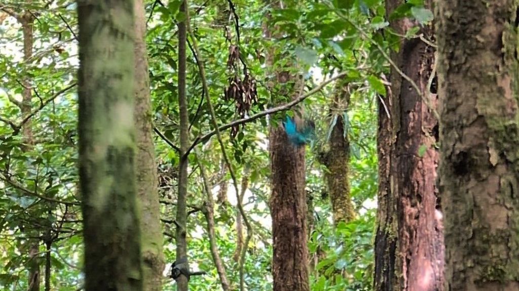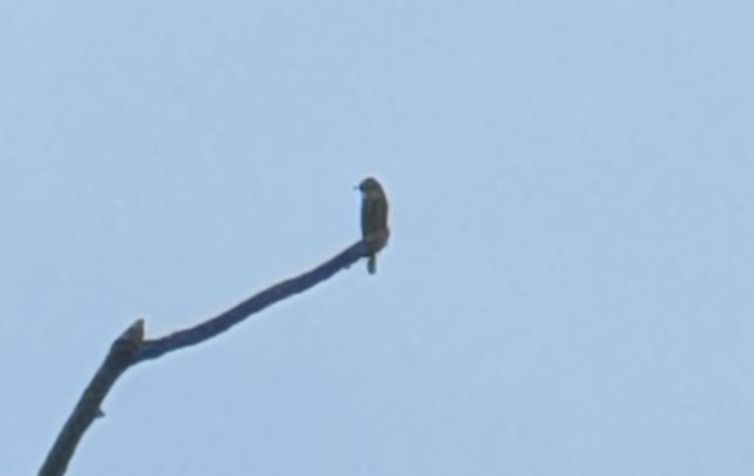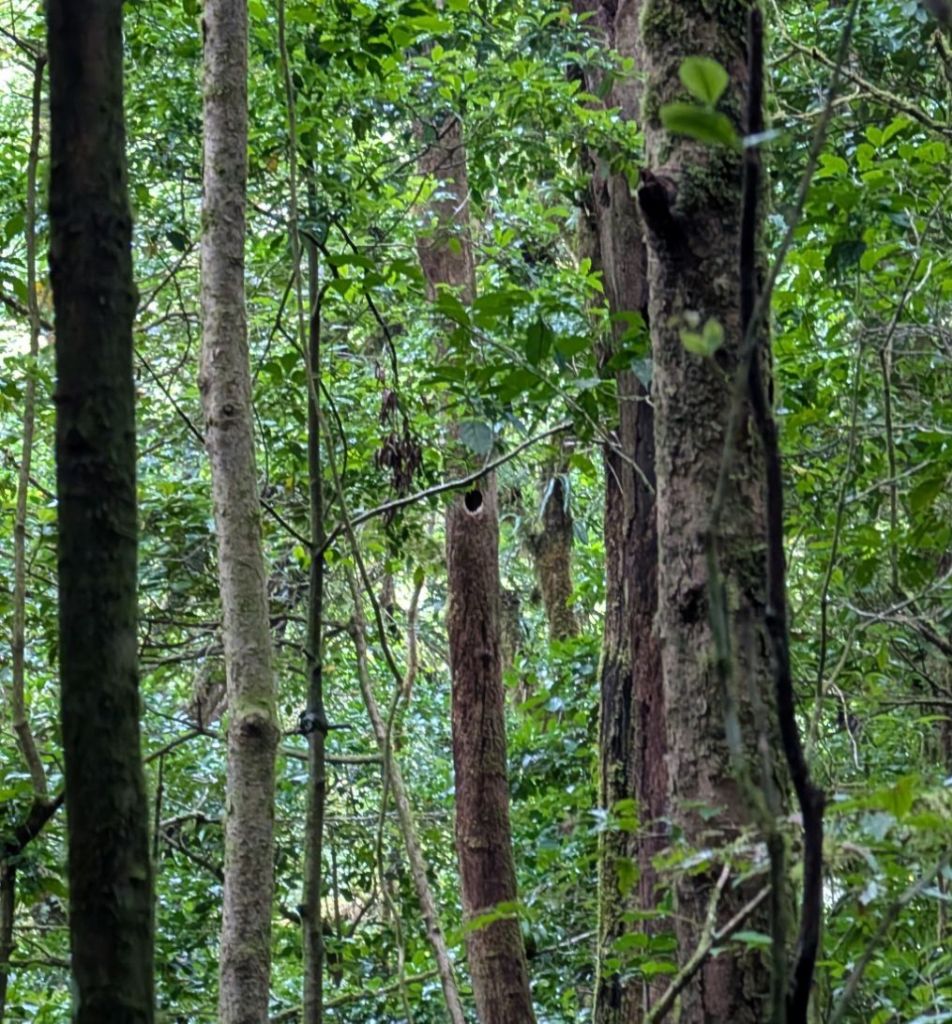 We could still hear the bellbird, but decided to give up and headed away… Then… I saw a bird hopping in the top of a very high dead tree. It was the direction of the sound. It was hopping to face different directions, almost dancing. And it had the same silhouette of the bellbird. It was so high and hard to see in the light, but I’m sure it was the bellbird!! 🥳 I was made up! What a great end to the day!!