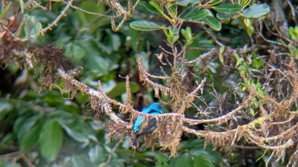 We really enjoyed Treetopia, but in all honesty we didn’t see many birds. We could hear loads… loads of solitaires and nightingale thrushes, with their ethereal songs echoing through the mists and trees, but we only saw a handful. The highlights were a redstart, which nearly landed on Dave’s foot trying to get back to her nest(!), a pair of black guans, pair of blue dacnis (the male was SO BLUE), and some purple-throated mountain gem hummingbirds super close in the high canopy (which was underneath us!! Haha