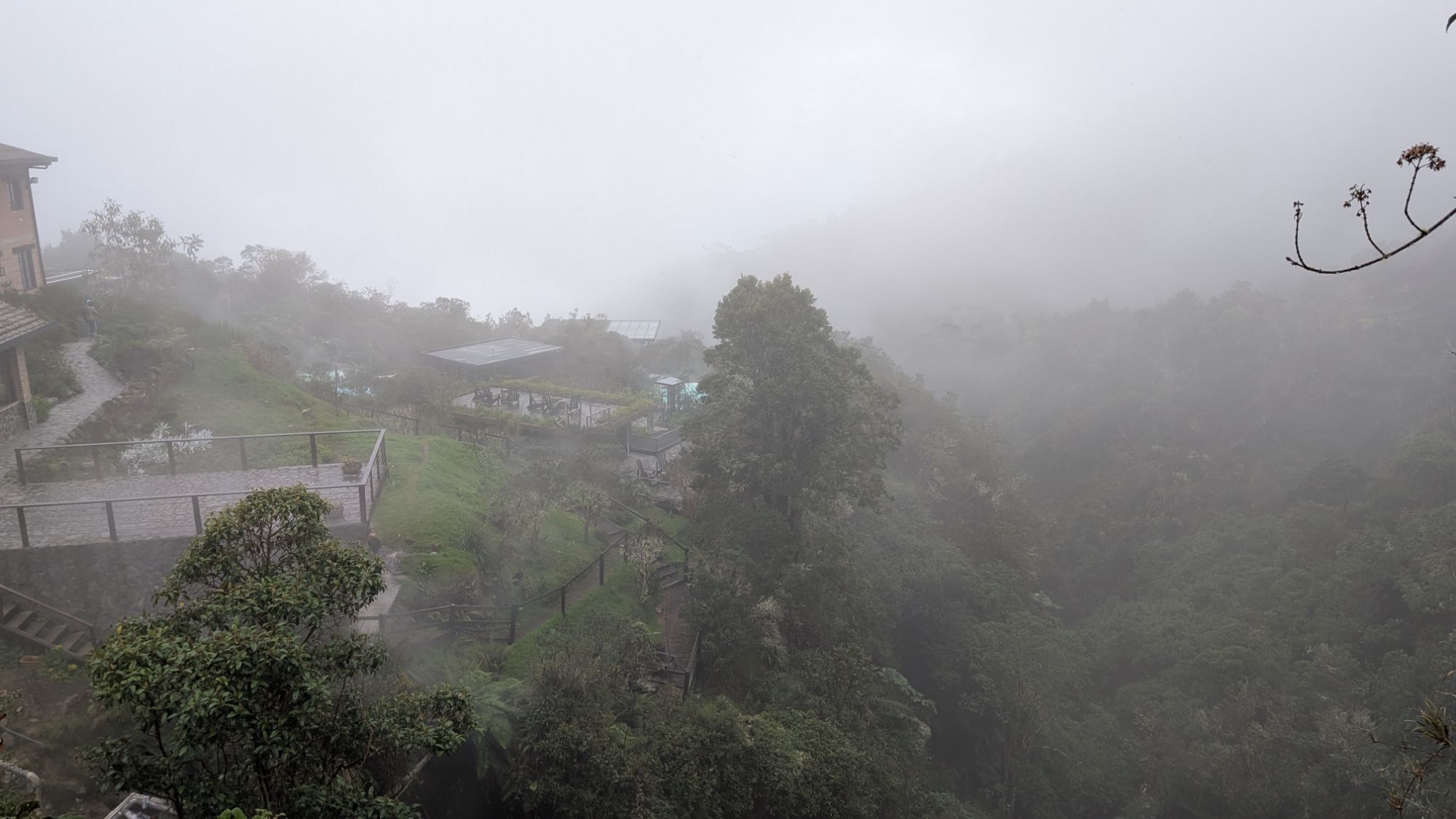 The valley where the hotel was was ever changing too, one minute it would have clear views out over the distant city of Manizales, then 5 minutes later the clouds and mist would roll in and you could barely see your hand out in front of you! And it was cold… bitingly cold, it took all our layers to shield against the cold, and so the thermal pools were a blessing in the cool afternoons as the sun began to set.