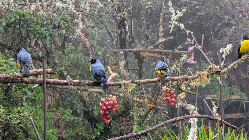 In fact, there were many other birds here, aside from the hummingbirds and antpittas, many of them visiting for food, or trained in some way – even the flowerpiercers would occasionally visit the hand feeders if you were patient enough 😀