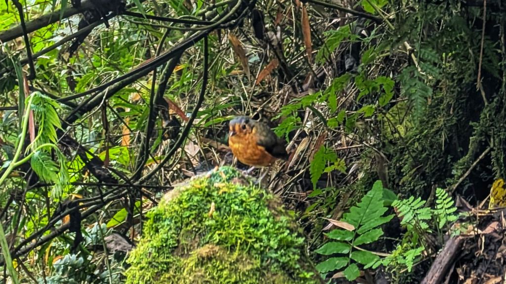 Our first experience of this was when we saw little “Paramo” (that’s the antipitta’s name!) a Tawny antpitta which only live in these forest fringes of the Paramo biome. We headed towards a clearing in the forest and the guide called his name; “PARAMOOO, PARAMOOOOOO!!”. The next thing we saw was a little brown bird come hopping out of the undergrowth to collect his worms! I even got to hand feed him 🙂 So cute!